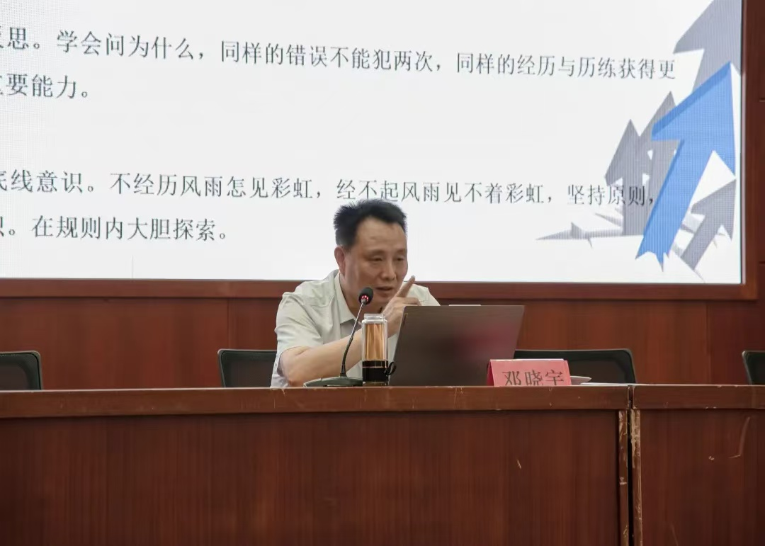 接下来理学院党委书记邓晓宇老师和大家共同探讨了“大学的本质”,希望同学们能够有知识、思辨、统筹、养成、拓宽、实践能力的提升。养成良好的学习习惯与态度,积极参加社会实践,学会否定与反思,有度的把握与底线意识。成为一名有理想、有目标、有思想、有知识、有能力的大学生。