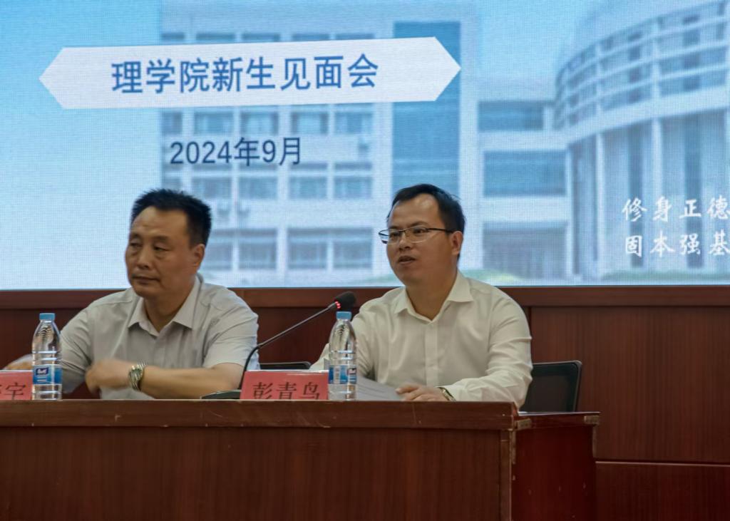 2024年9月13日,理学院于南院图书馆报告厅隆重举行主题为“砥砺深耕少年志,履践致远新征程”新生见面会,理学院全体领导班子、2024级本硕全体新生参加。会议由理学院党委副书记彭青鸟老师主持。