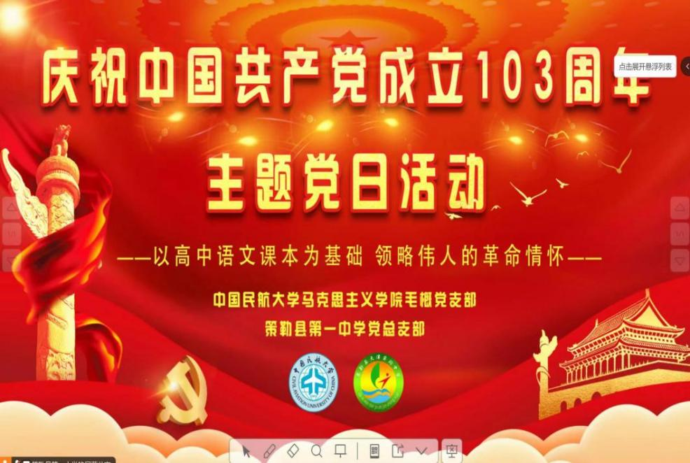 7月10日,毛概教研室党支部与策勒县第一中学党总支部以线上线下相结合的形式联合开展“领略伟人的革命情怀”主题党日活动。