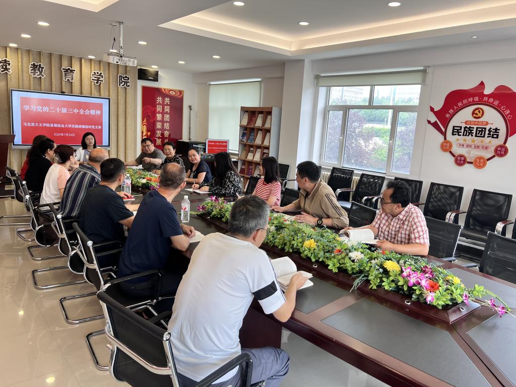 24日上午,主题报告结束后,临时党支部组织全体赴延边大学教师集中学习党的二十届三中全会精神。临时党支部书记赵殷指出,党的二十届三中全会精神进教材、进课堂、进头脑,是深化思政课教学改革创新的时代要求,老师们要会讲、讲好全会精神,充分发挥理论阐释作用,配合学校和全民航开展全会精神宣讲工作。与会教师围绕主题开展热烈讨论,表示会将学习贯彻全会精神融入研修全过程。