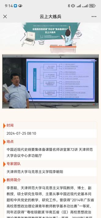虽然在暑假期间,但停课不停学,7月25日上午,纲要教研室组织老师们通过线上学习方式进行本周的集体备课。