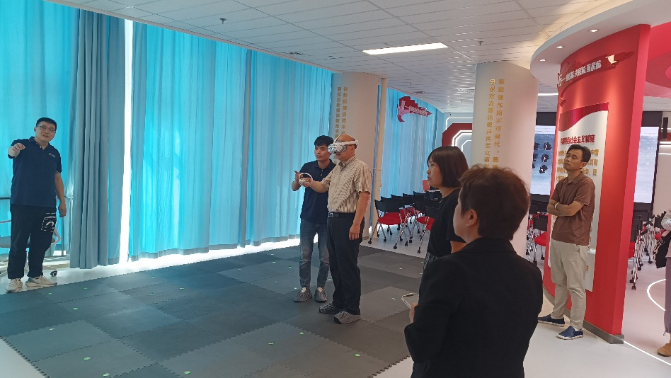 与会教师与思政系教师们一同参观了暑期落成的“中国民航大学马克思主义学院思政课沉浸式教学创新中心”。分管副院长介绍了中心的设计理念和建设细节。设备技术人员展示了中心的各项功能,并针对设备操作方法、安全管理注意事项等内容对老师们进行了培训。