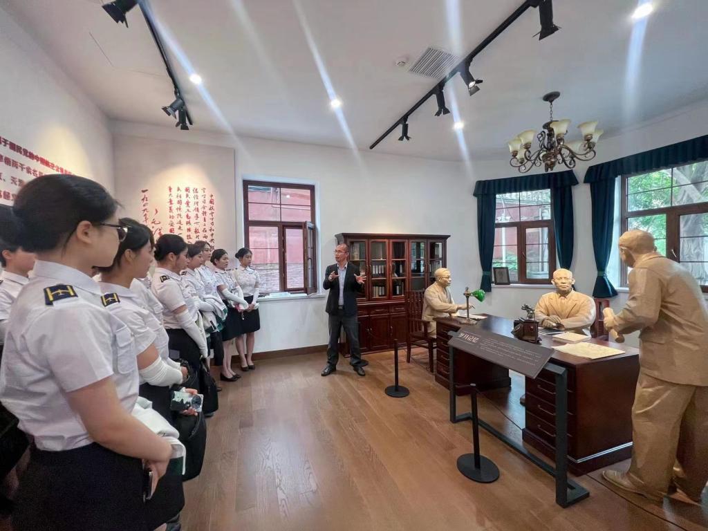 摄影作品摄于中国民航大学思政课实践教育基地,学生正在聆听教师讲授两航起义策动工作。中国民航大学以此基地为平台,全景展示两航起义及其重要历史价值与意义,扎实开展爱国主义教育。在两航起义的组织策动过程中,工运力量发挥了不可替代的作用。两航员工既是两家航空公司生产的主力军,也是起义不可或缺的力量。起义核心领导小组通过港九民航工会,积极发动和团结两航基层员工,开展各种形式的爱国主义宣传和活动,提高他们的政治觉悟和组织纪律性。在起义的关键时刻,两航员工纷纷响应党的号召,积极参与落实起义的各项工作,为起义的成功奠定了坚实的基础。