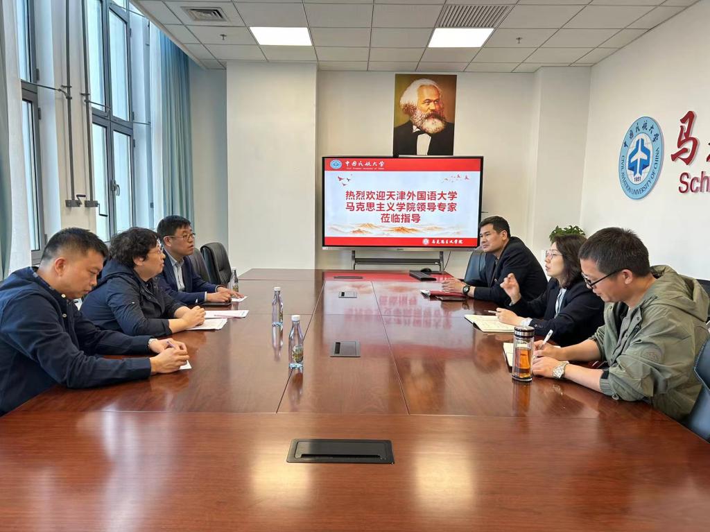 10月11日上午,天津外国语大学马克思主义学院院长郑海呐教授带领全体领导班子一行三人莅临我院进行实践教学指导与交流。