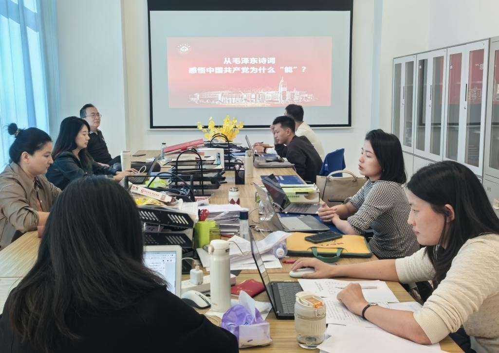 10月11日下午,毛概教研室党支部在学院132室开展“重温伟人诗词 再悟党的初心使命”主题党日活动暨集体备课会,活动由党支部书记陈燕芽主持,娄梦玲老师讲授主题党课,支部全体成员参加。