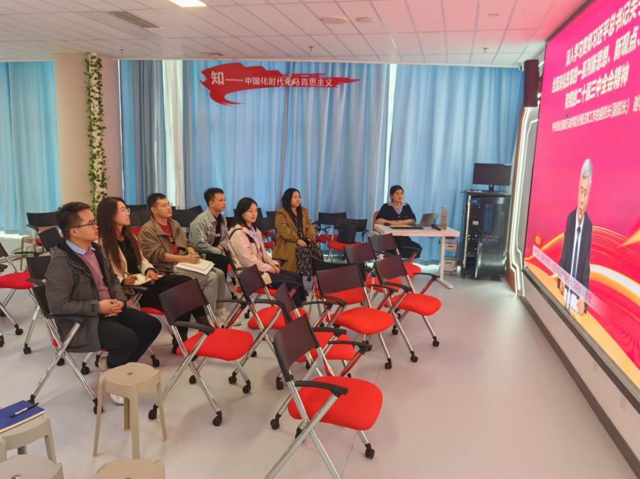 为深入学习贯彻习近平总书记关于全面深化改革的一系列新思想、新观点、新论断和党的二十届三中全会精神,11月1日下午形势与政策党支部在马克思主义学院三楼沉浸式教学创新中心开展主题党日活动,会议由党支部书记瞿琼主持,全体支部成员参加。