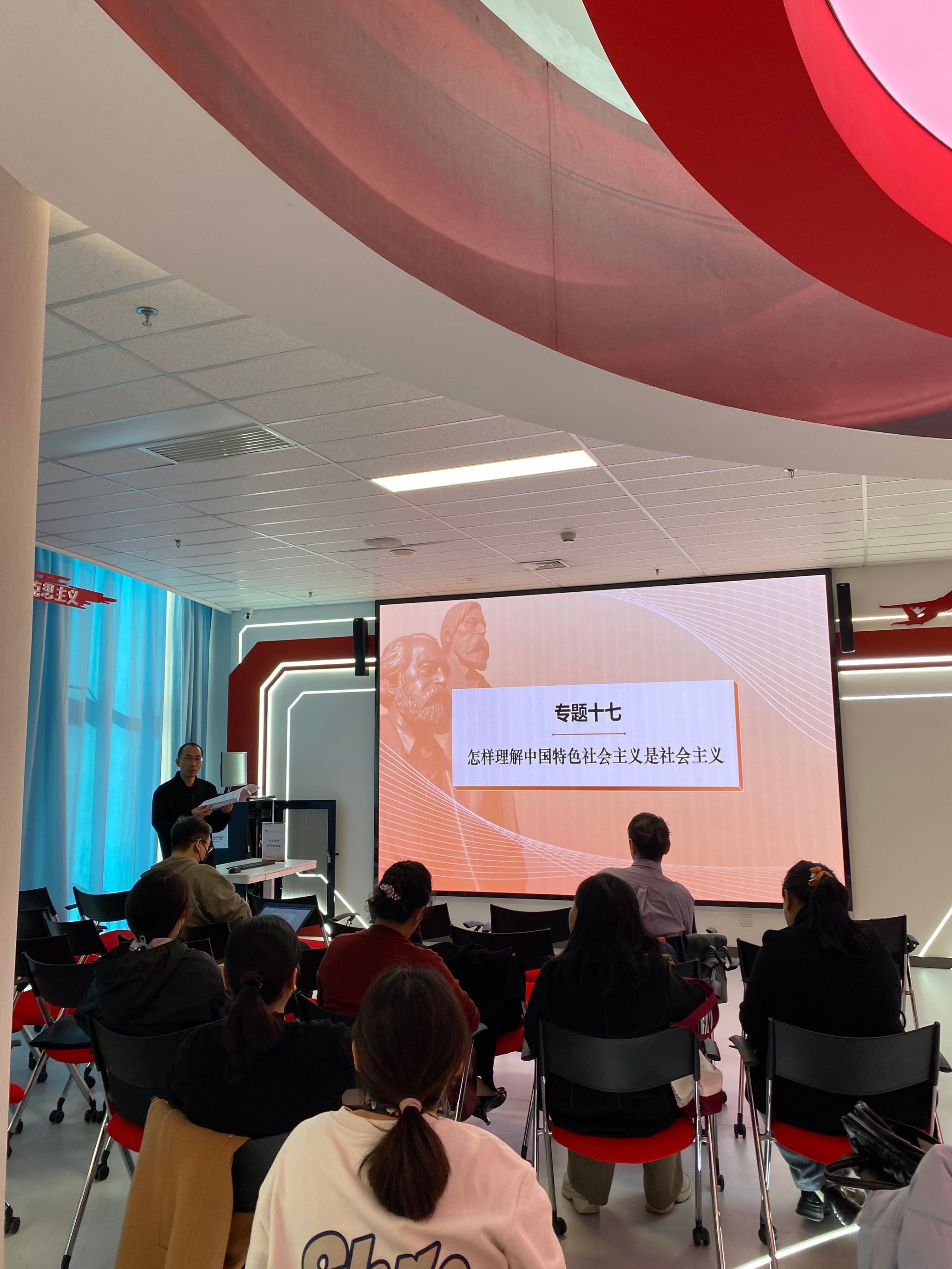 李冰就“怎样理解中国特色社会主义是社会主义”这个专题和老师们进行交流。从一些西方舆论对中国特色社会主义的质疑导入,正面回答中国特色社会主义是社会主义而不是其他什么主义,引出科学社会主义基本原则,重点结合十条基本原则分析讲解中国特色社会主义既坚持了科学社会主义基本原则,又根据时代条件赋予其鲜明的中国特色。本专题旨在让学生把握科学社会主义基本原则,进一步增强中国特色社会主义道路自信、理论自信、制度自信、文化自信。
