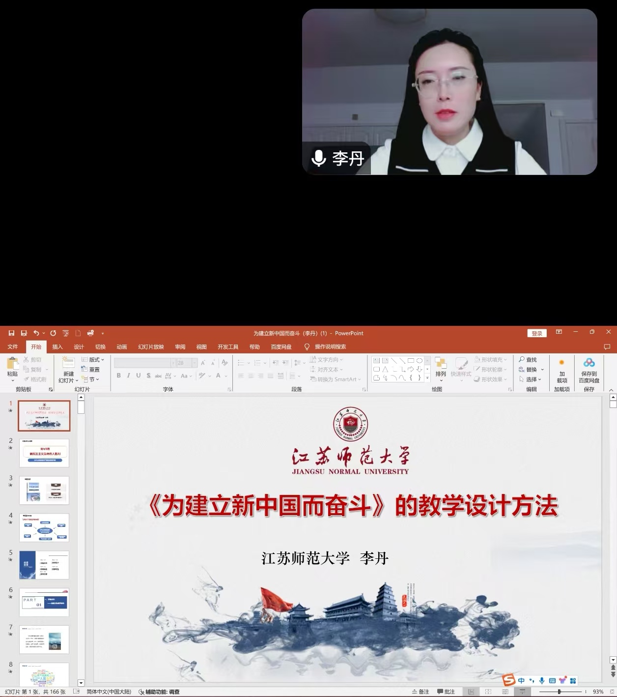 李丹副教授来自江苏师范大学马克思主义学院,博士,硕士生导师,中国近现代史纲要教研部主任。兼任江苏省妇联巾帼宣讲团成员、江苏干部理论教育讲师等。长期从事马克思主义中国化、思想政治教育、党史党建等方面的理论研究。本次集体备课分享的主题为《“纲要”课第七章<为建立新中国而奋斗>的教学设计方法》。李丹老师以“中国共产党如何带领全国各族人民为建立新中国而奋斗的历史过程与基本经验”为核心问题,从学情分析、教学设计、教学实施、教学特色和教学反思几个方面进行分享,内容深入浅出,教学方法新颖,教学内容逻辑清晰、重难点突出。分享最后,李丹老师还从教学思想、教学目标、教学内容、教学流程、教学方法、教学素养六个层面分享了自己的教学体会。