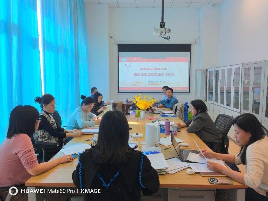 为深入学习贯彻习近平新时代中国特色社会主义思想,巩固深化党纪学习教育成果,3月21日下午,毛概教研室党支部按照相关工作部署,在教研室召开了2024年度党支部组织生活会暨民主评议党员工作会议。会议由支部书记陈燕芽老师主持,全体党员参加。