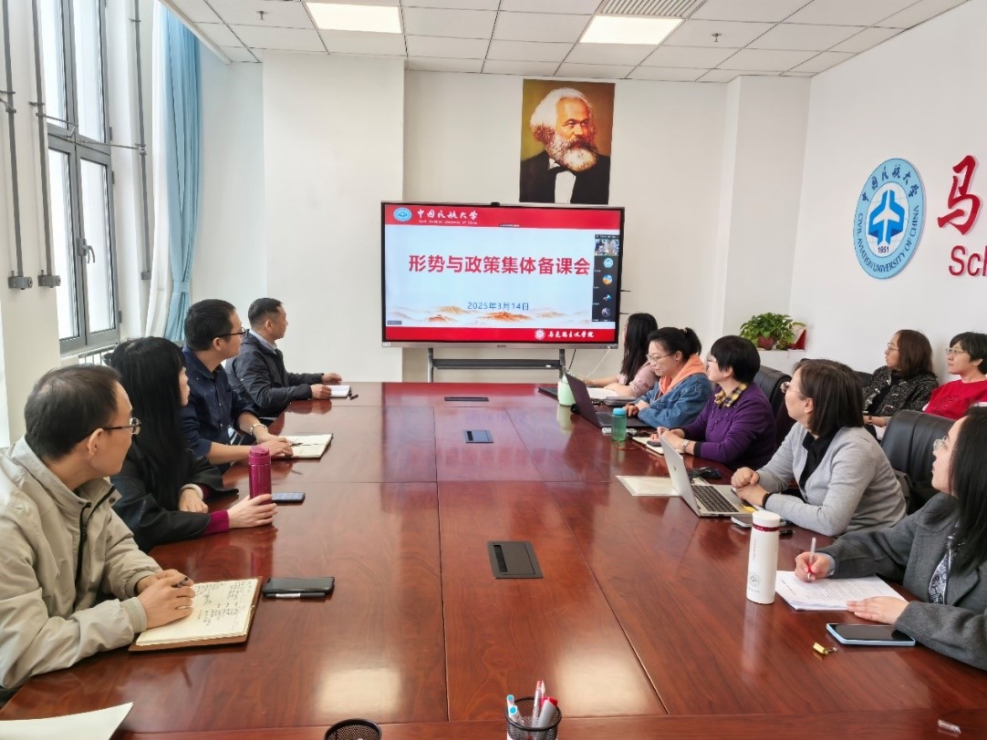 3月14日,形势与政策教研室召开新学期备课会,形策教研室全体教师、《形势与政策》课全体任课教师参会。马克思主义学院副院长、形势与政策课程负责人陈慧军介绍课程改革方案,形策教研室主任瞿琼主持集体备课会。