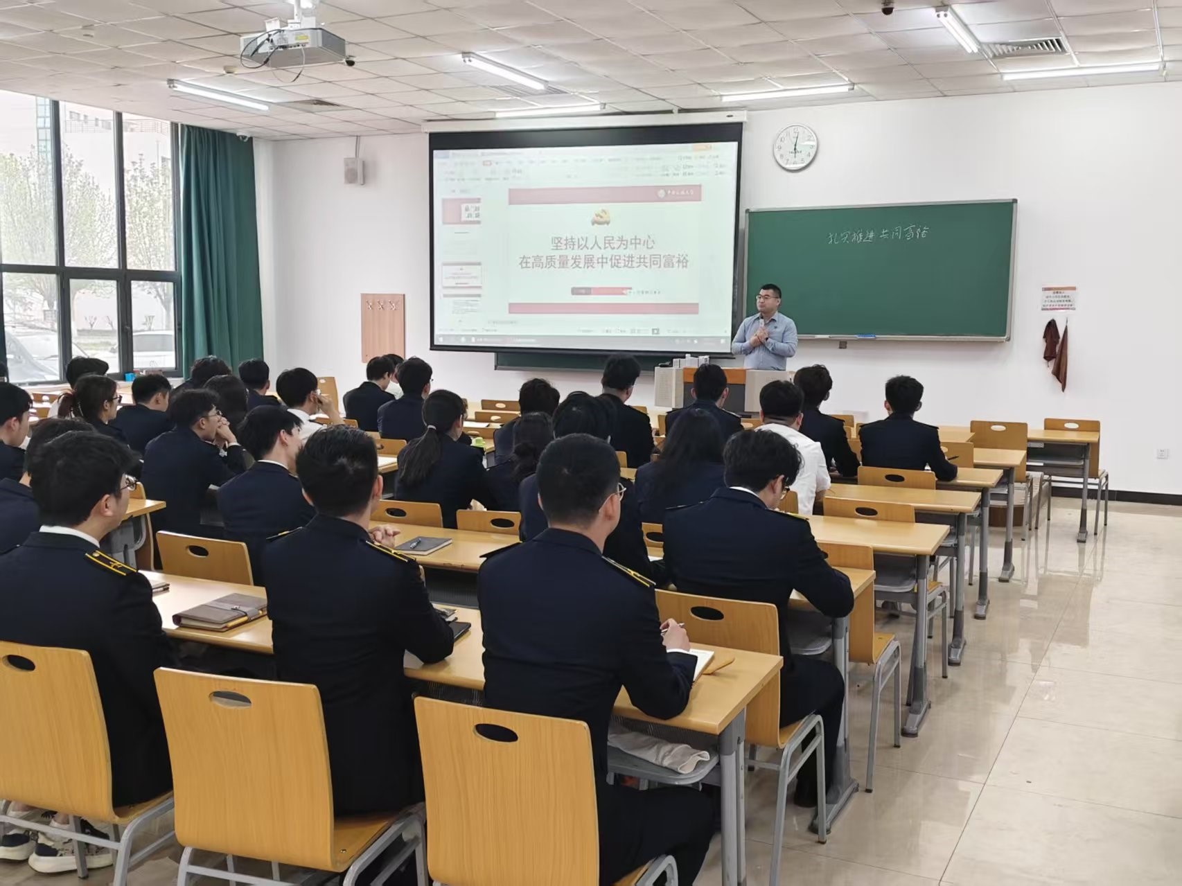 尹航老师结合当下最新时政动态,引导学生从自身、民航、民族、国家、地区、世界、人类的多重角度看待共同富裕的缘起、发展、震荡和突破,将中国共产党的核心宗旨与学生个体对照分析,引导学生进一步增强理想信念、继续刻苦学习,提高为人民服务能力,在为人民服务中锤炼本领,早日达到党员标准,成为光荣的中国共产党党员。