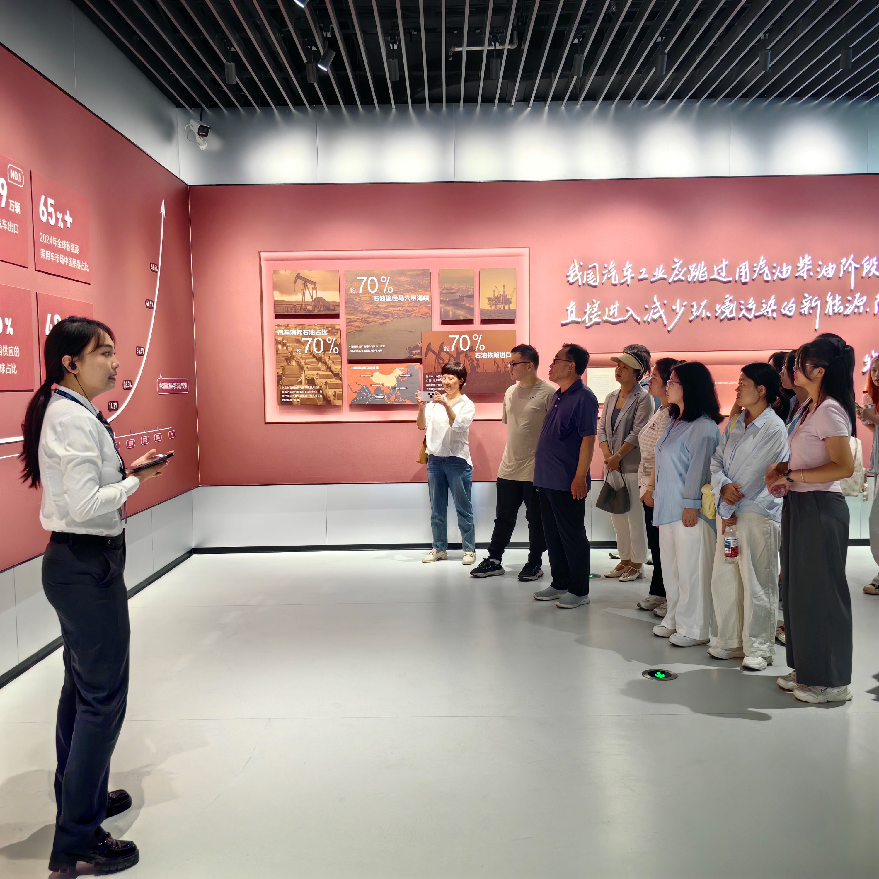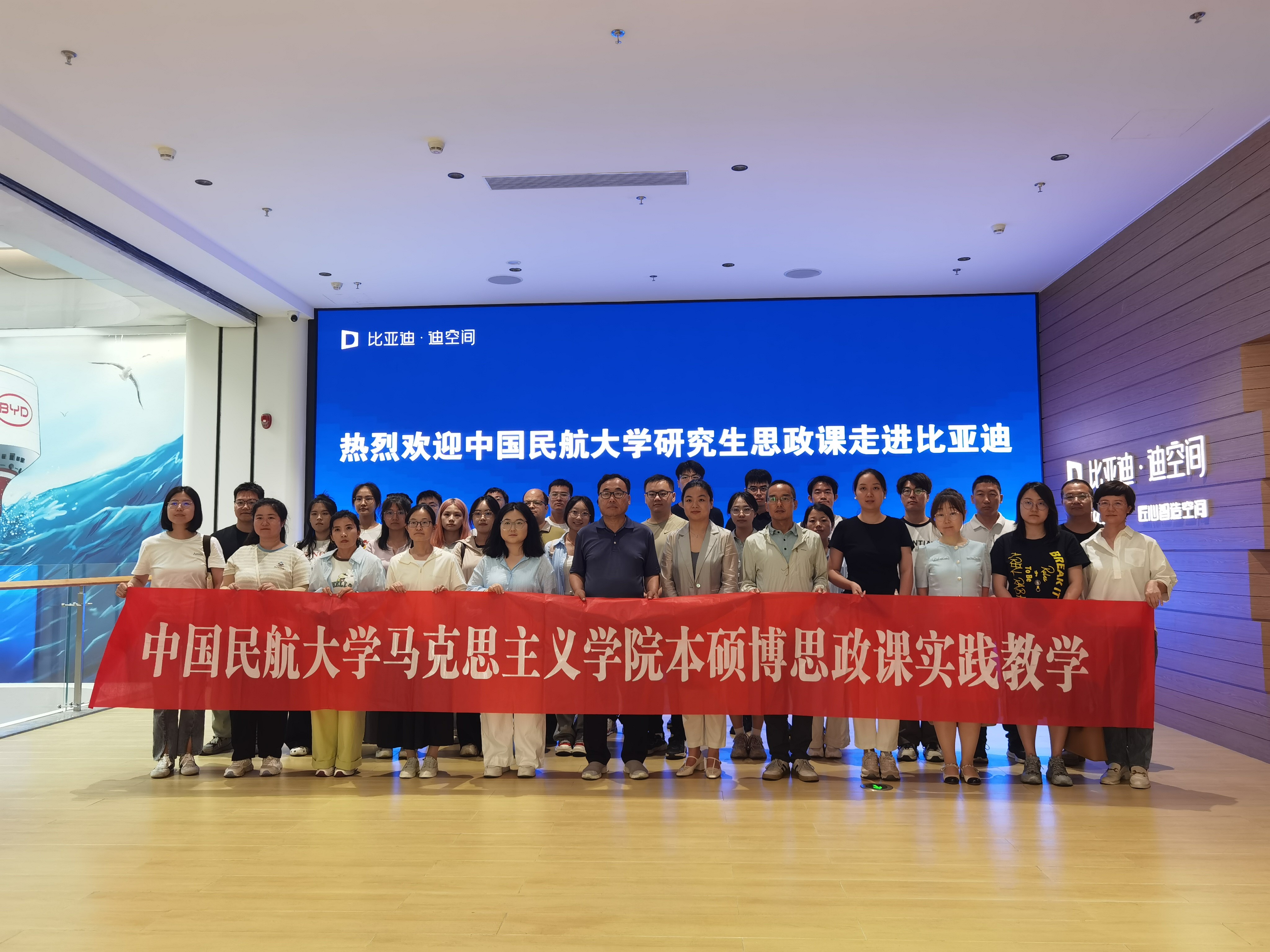 近日,马克思主义学院联合研究生院,组织控制科学与工程、自动化、大数据等相关专业研究生,前往天津比亚迪沉浸式科技空间(迪空间),开展了一场别开生面的“思政课问道人工智能”主题实践活动。基础教研室教师、新疆策勒教师也共同参与了本次活动。此次40余人的活动旨在学校“1232”大思政教育教学体系下,创新研究生思政课实践教学新模式,引导研究生运用马克思主义的立场、观点、方法,在科技创新的最前沿洞察时代发展。