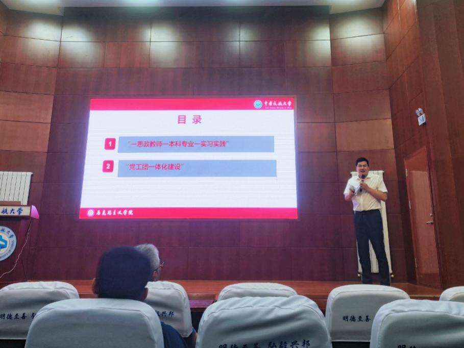 马克思主义学院党委书记邓雪强调,特色马院建设是落实“大思政课”建设的基层实践,也是贯彻学校“1232”大思政教育教学体系的具体体现,每一位马院教师都应主动融入“特色马院”建设的中心工作中来,做到“人人有责、人人尽责”,通过与专业、党团支部等建设融合,将忠诚、精通、担当、善战的“思政铁军”锻造得更加坚强有力。