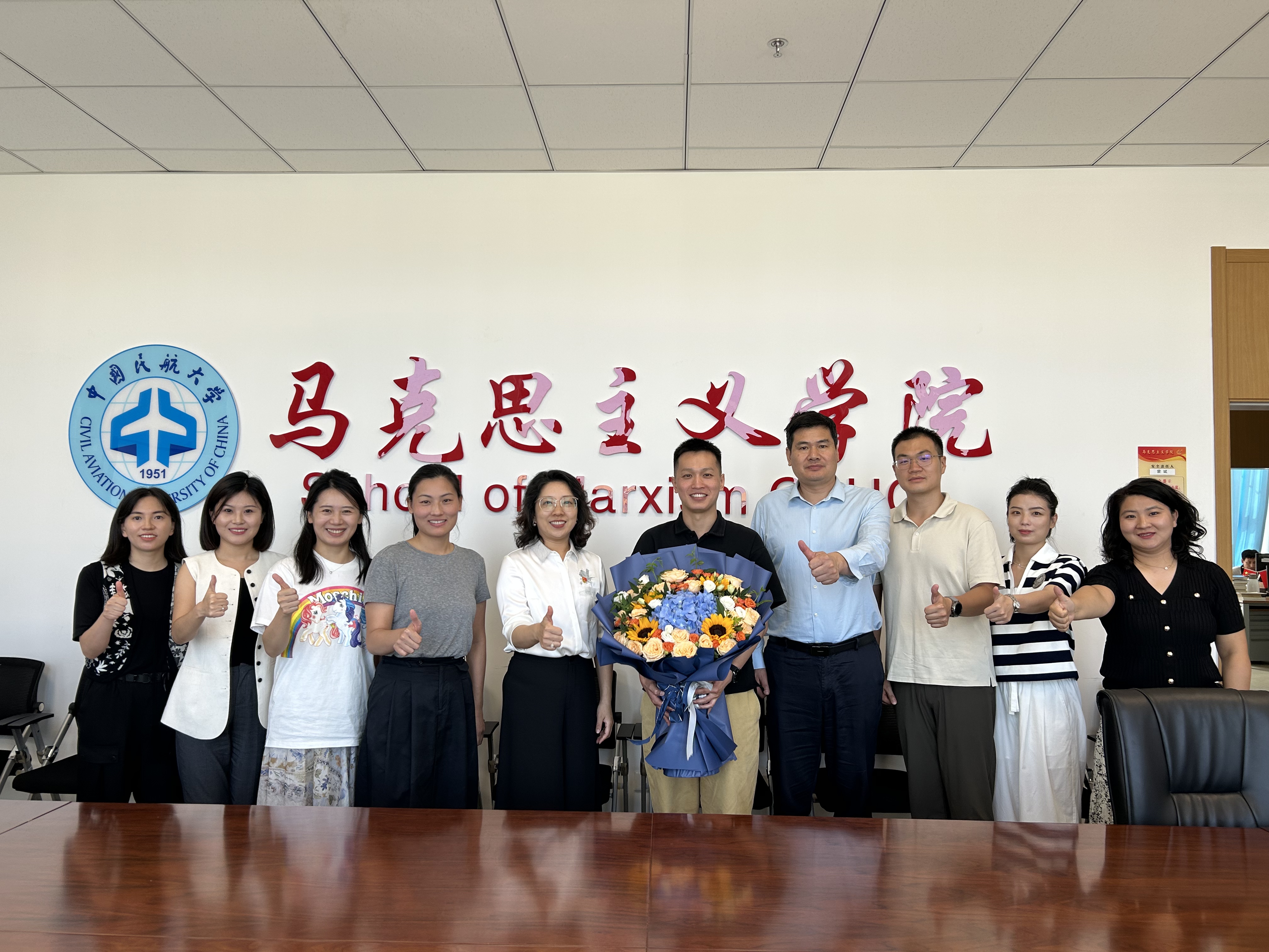9月7日上午,马克思主义学院为即将赴新疆策勒一中挂职的赵晓宇老师举行了欢送仪式。“教育帮扶给远在新疆策勒的孩子们心里种下一个守护蓝天的梦想,古再丽努尔的到来让我们看到了教育帮扶的硕果。我将竭尽所能传递好教育帮扶的接力棒,助力文化润疆,托举策勒学子的金色梦想和美好未来,帮助更多的策勒学子奔赴民航、筑梦蓝天。”赵晓宇老师说道。