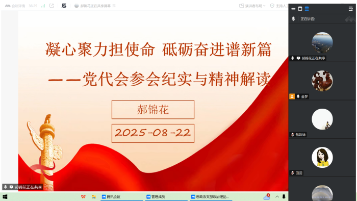 8月22日下午思想政治教育系党支部围绕“学习宣传贯彻第三次党代会精神”主题开展了一次线上政治理论学习,全体教职工党员和思政专业学生党员参加了此次集体学习。
