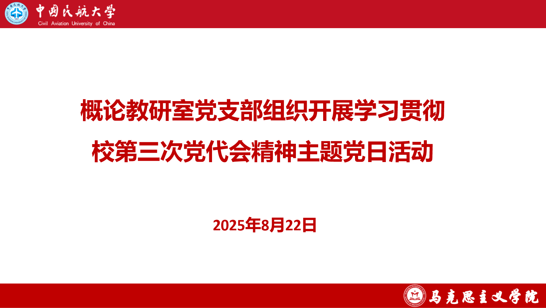 8月22日下午,概论教研室党支部组织开展学习贯彻第三次党代会精神主题党日活动。支部全体党员参会。