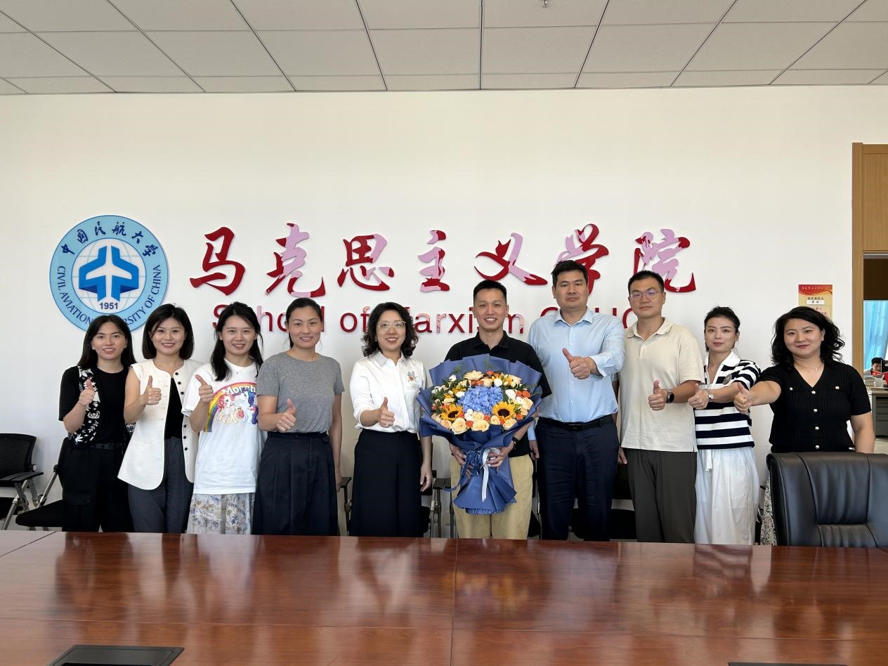 赵晓宇老师表示,选择赴疆挂职,既是响应学校号召,也是希望能亲身参与边疆教育帮扶工作。“作为马克思主义学院的思政课教师,我想把课堂上悟到的、研究中学到的,转化为服务边疆师生的实际行动。” 同时,赵晓宇老师也承诺将牢记学院嘱托,在挂职期间严守纪律、虚心学习,既要把先进的教育理念带过去,也要把边疆的发展故事、民族团结的生动案例带回来,“不辜负学院的信任,也不辜负自己的初心。”最后,教研室教师代表对赵晓宇老师送上祝福,与会人员合影留念。