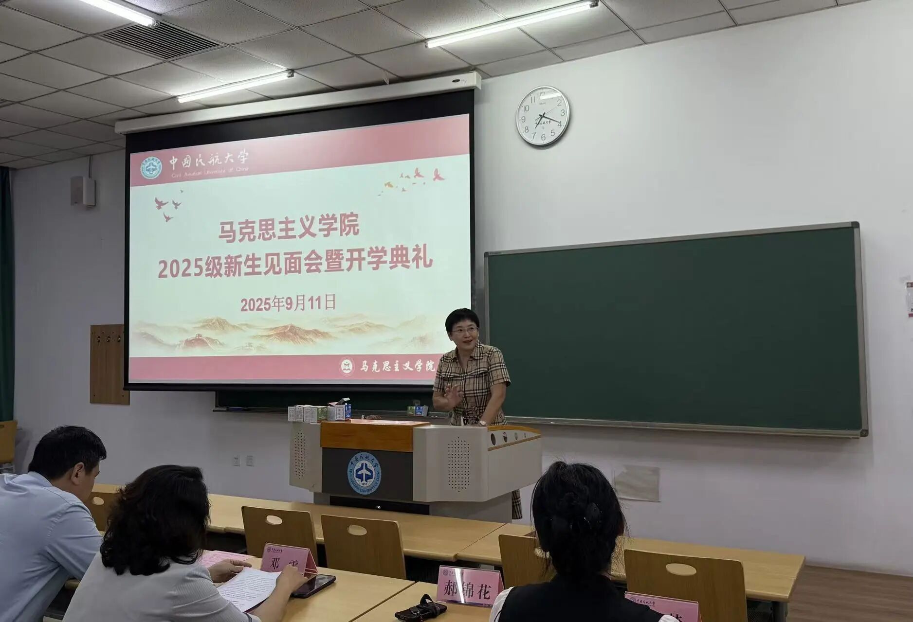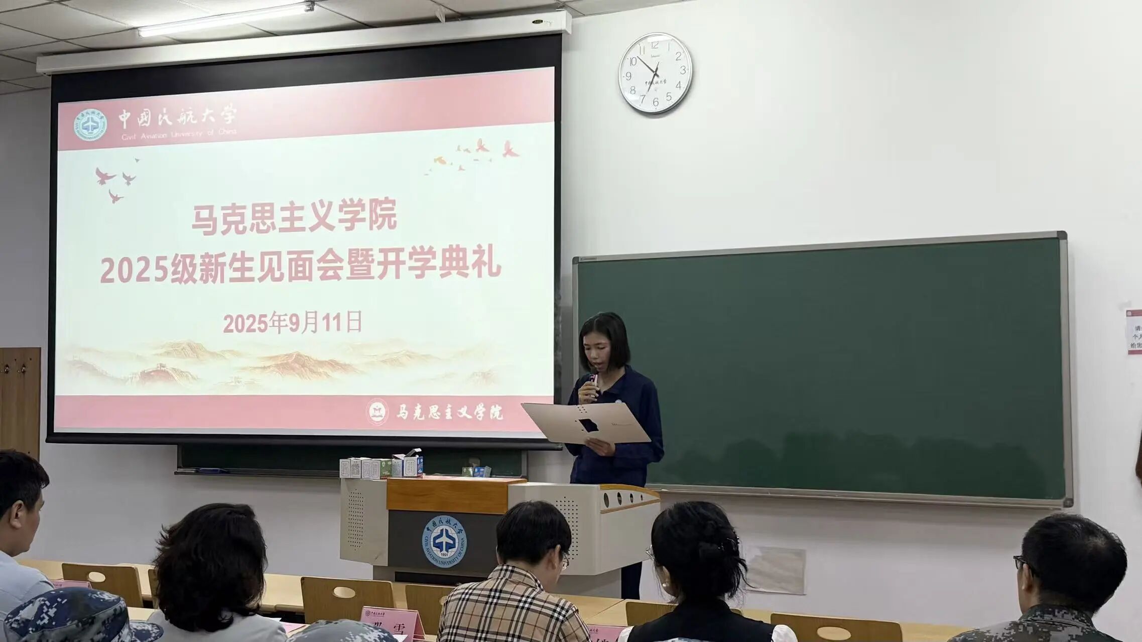 9月11日晚,中国民航大学马克思主义学院隆重举行了2025级新生见面会暨开学典礼。此次典礼旨在迎接来自新疆的少数民族预科生、思想政治教育本科专业学生及首届硕士研究生加入学院大家庭,携手踏上学术探索与个人成长的新征程。典礼由学院党委副书记贺国元老师主持,学院相关领导、教师及全体新生参会。