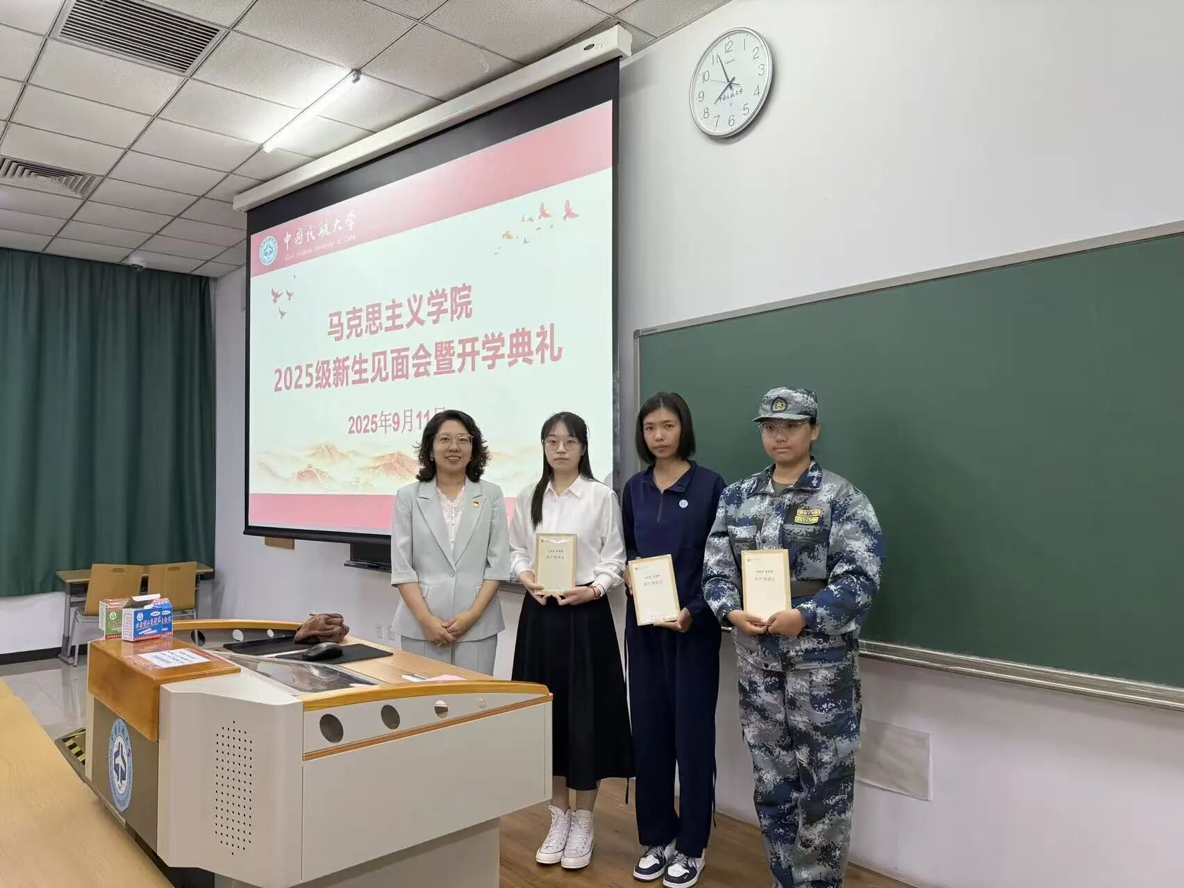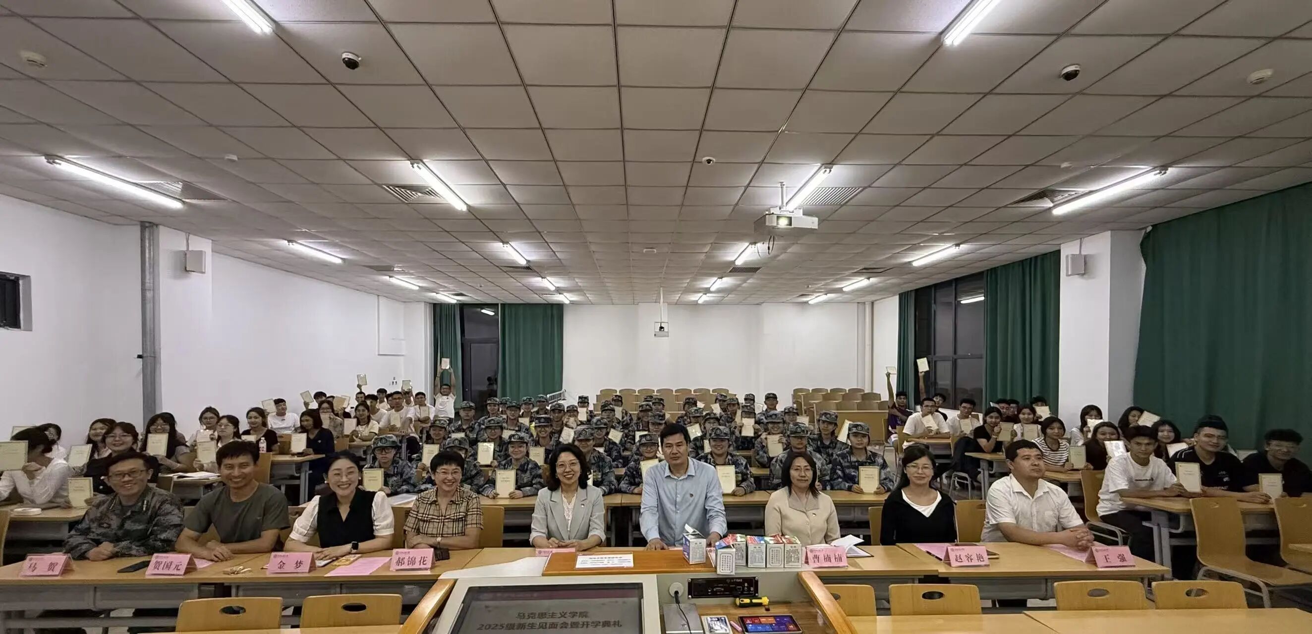 典礼最后,学院向全体新生赠送了《共产党宣言》,到场师生合影留念。开学典礼在庄重而热烈的氛围中圆满落幕。