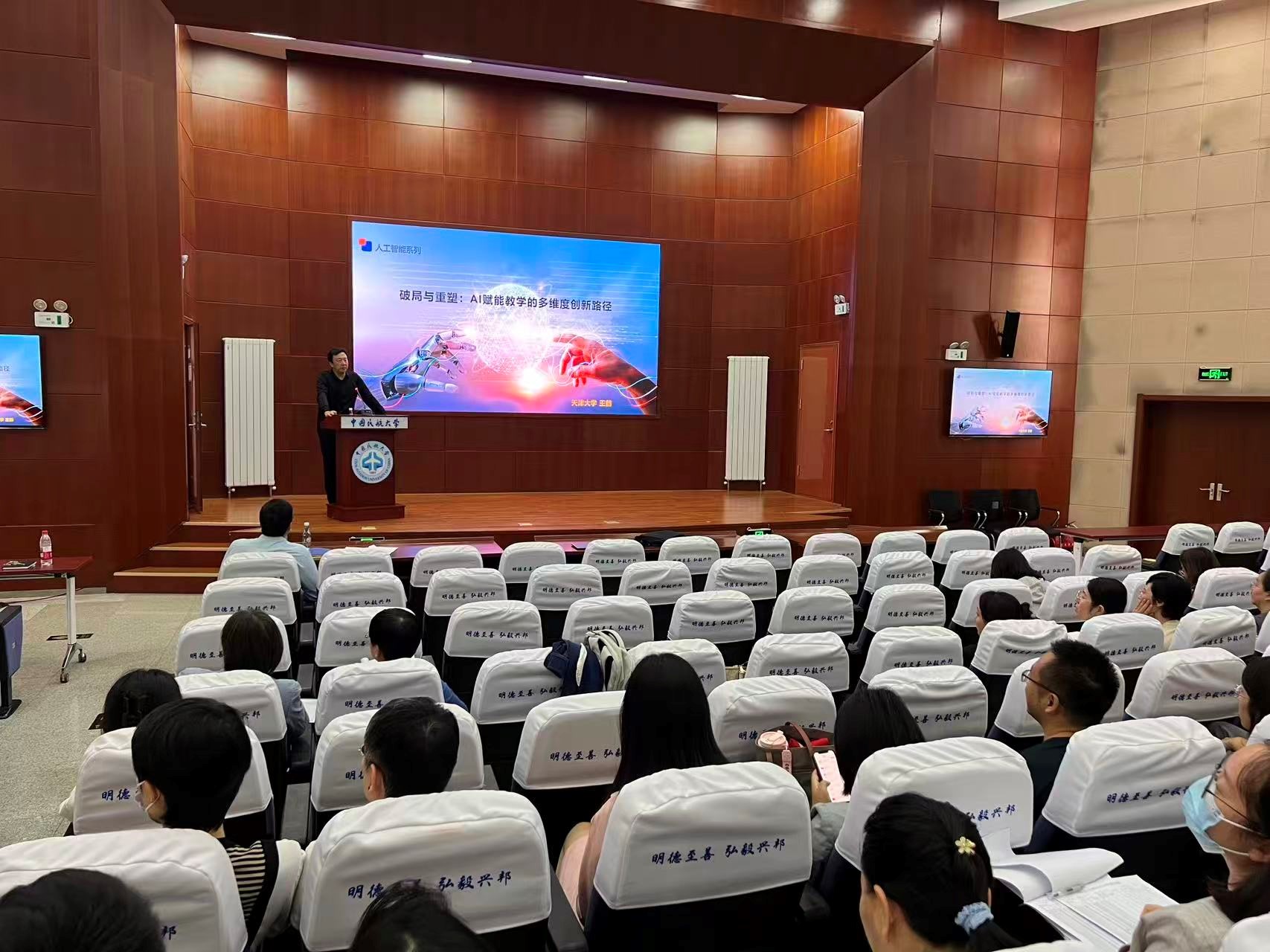 为深化教育教学改革,探索新时代思政课与数字技术的深度融合,马克思主义学院于2025年9月24日下午在南院图书馆圆形报告厅举行2025年教学研讨会暨“千禧湖大讲堂”第十九期讲座。会议由马克思主义学院院长主持,学院全体教职工参会。会议特邀请超星泛雅集团专家王宏与天津大学国家课程思政教学名师王鹤作专题报告,共同探讨数智化教育生态与AI赋能的创新实践。