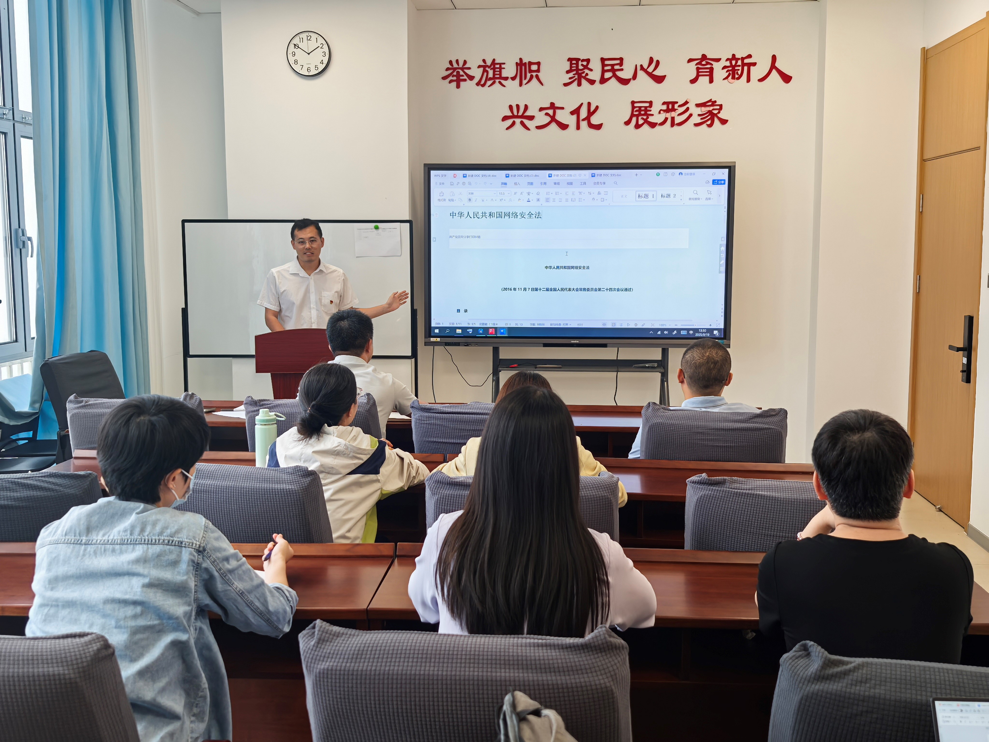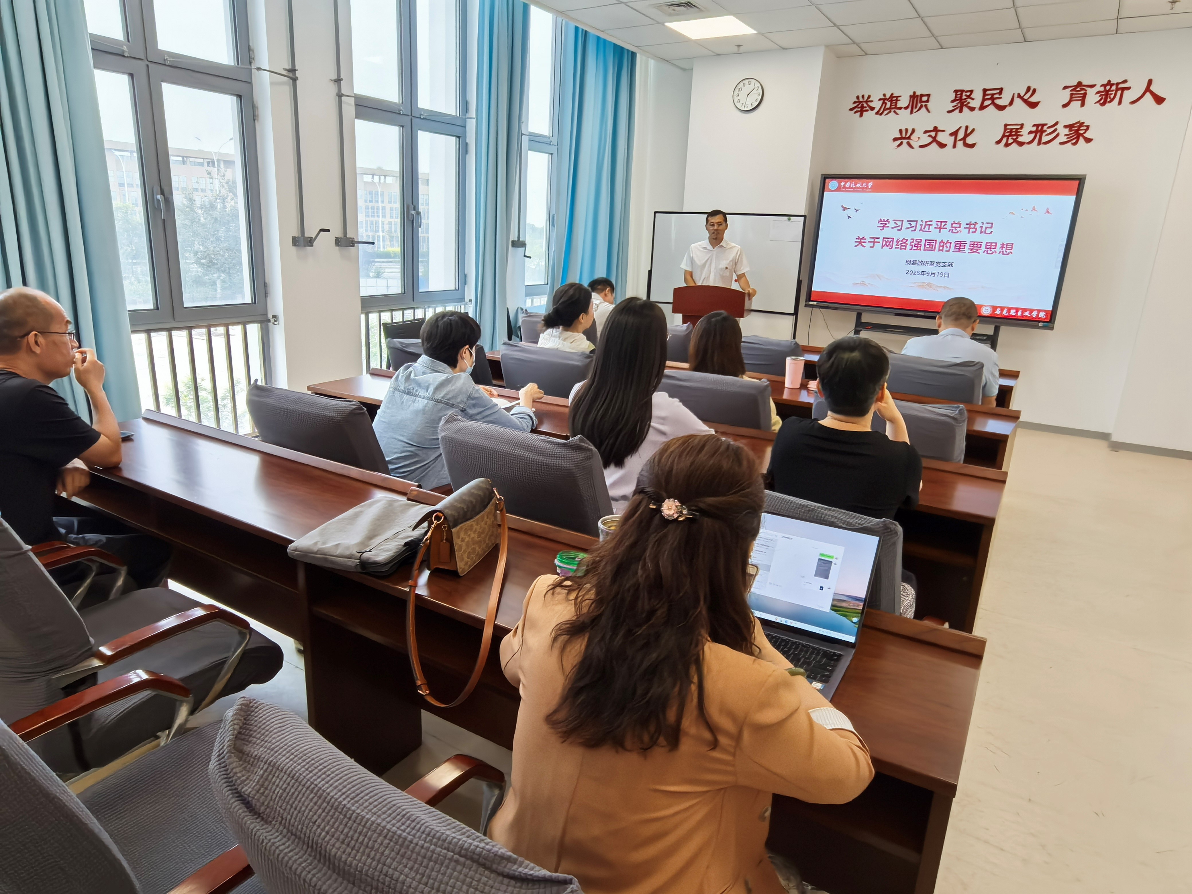 为深入学习贯彻习近平总书记关于网络安全工作的重要论述,切实增强支部党员的网络安全意识与防护技能,9月19日下午,纲要教研室党支部在学院230室组织召开了一场以“网络安全为人民,网络安全靠人民”为主题的专题学习会。此次会议由党支部书记郑帅主持,支部全体党员参与。