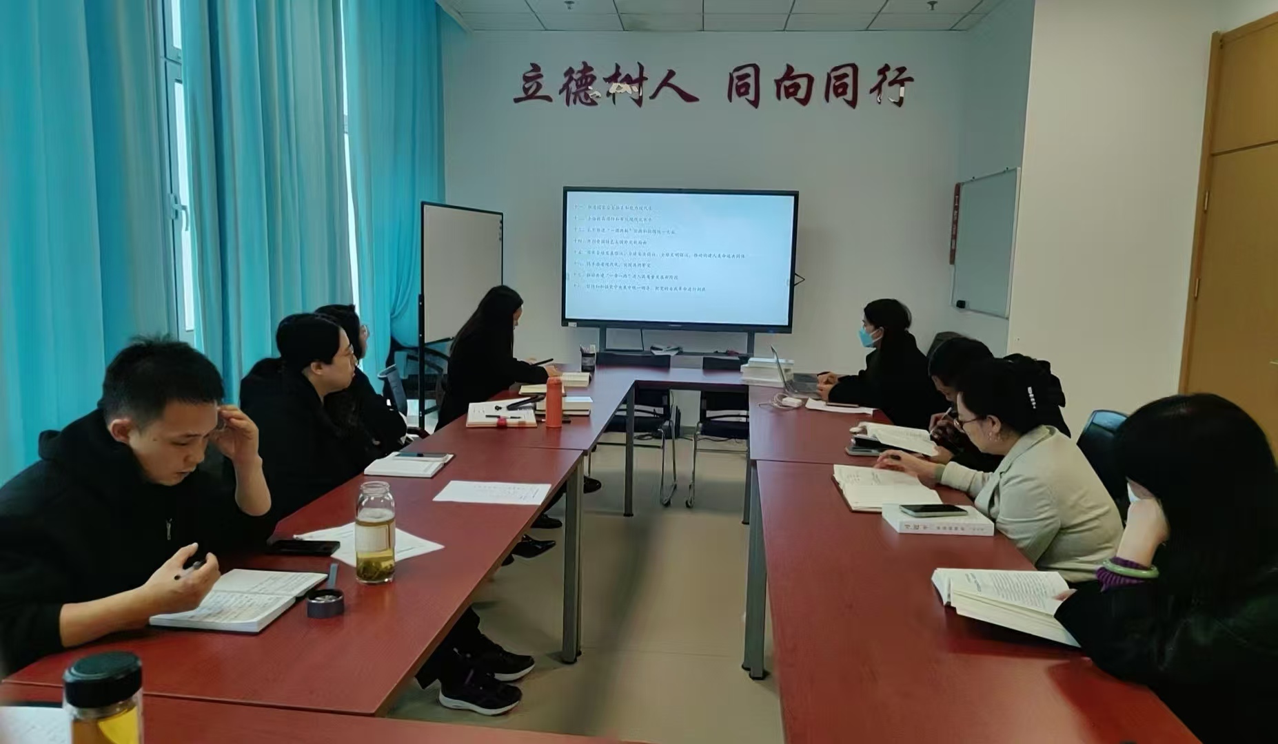 为进一步学习贯彻习近平新时代中国特色社会主义思想,加强政治理论素养,10月10日下午,形势与政策教研室党支部在马克思主义学院231会议室开展了以“学深悟透砺初心 凝心聚力担使命——学习《习近平谈治国理政》第五卷”为主题的党日活动。