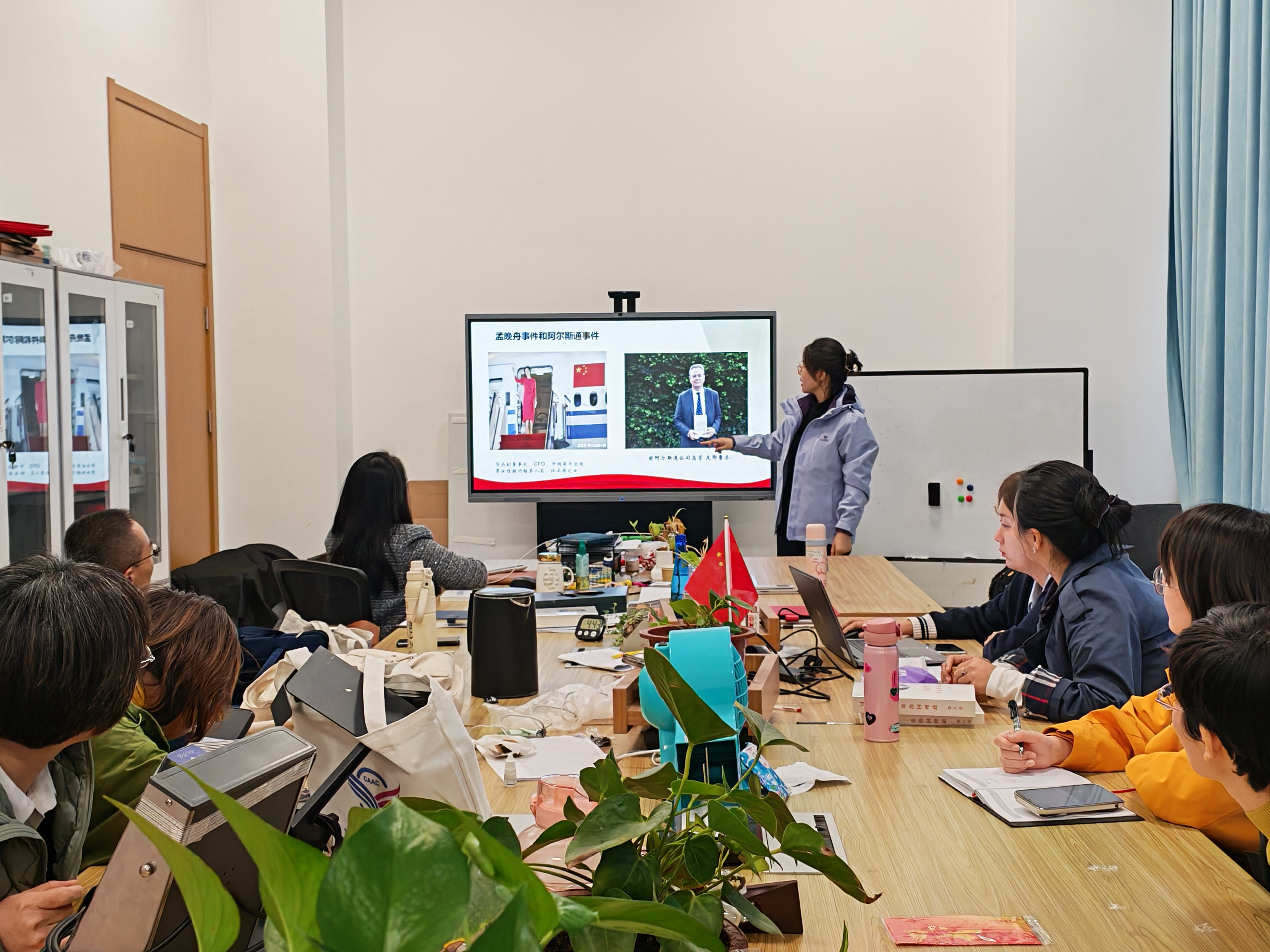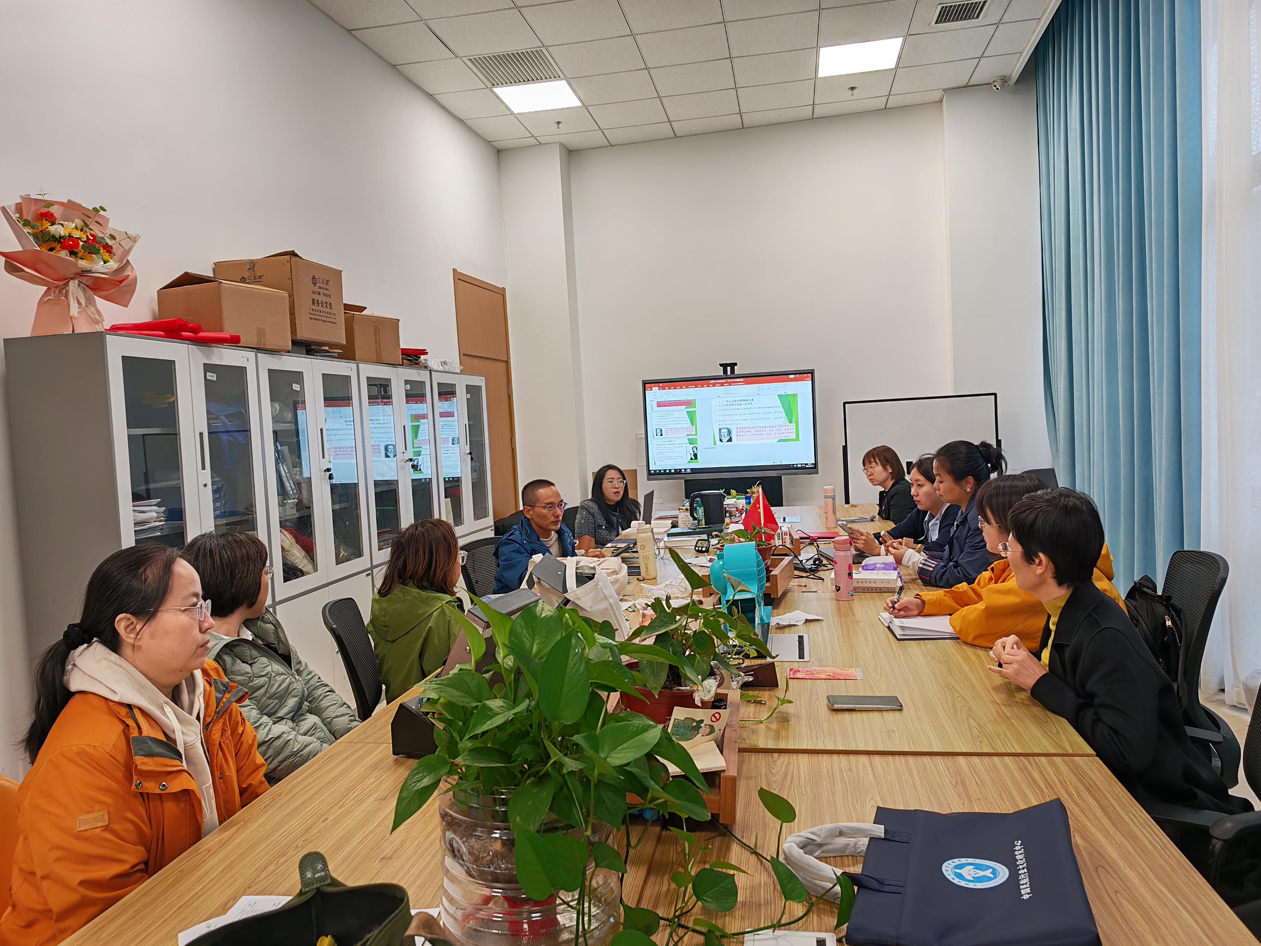 王聪娴老师围绕课程专题一“领悟人生真谛 把握人生方向”内容,从学情分析、教学目标与重难点、教学策略及教学过程展开备课。引领学生思考人的本质、人生目的以及如何实现人生价值,针对这次集体备课,与会教师进行了热烈讨论,各抒己见。教研室主任郭枝指出,所有成员在集体备课时集思广益,一起对主备准备的内容进行优化,从而提高集体备课效率。