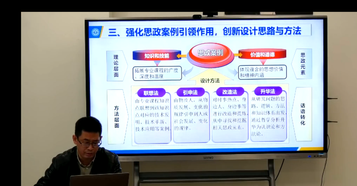 随后,中国民航大学航空工程学院路学成副教授聚焦“材料成型技术课程思政的教学设计”,分享了荣获天津市级课程思政优秀教学案例的宝贵经验。他提出多维度构建课程思政案例的创新策略,通过升华法、改造法、联想法、引申法等多元设计方法,从专业知识体系、事物发展规律、时事热点案例、技术革新历程中挖掘思政元素,既拓展专业课程的广度、深度与温度,又凸显其中蕴含的思想价值与精神内涵,助力学生在夯实专业素养的同时提升思政水平。