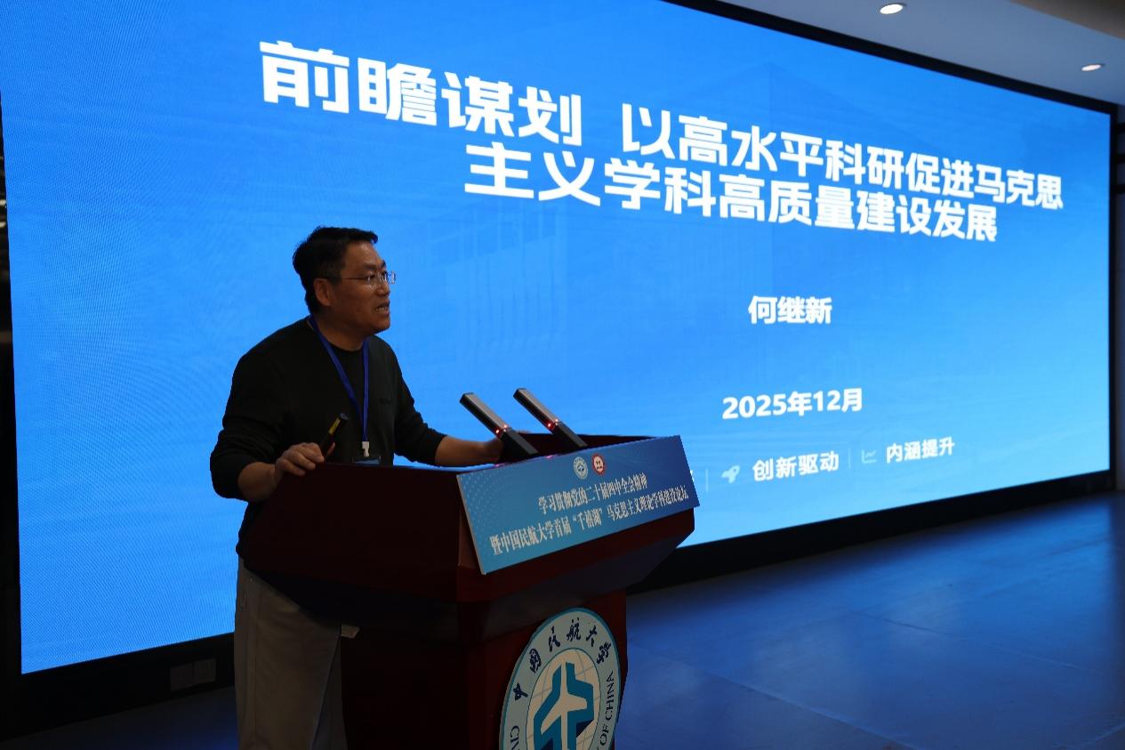 天津城建大学马克思主义学院院长何继新教授以“前瞻谋划,以高水平科研推进马克思主义理论学科高质量建设”为题展开分享,特别强调要构建知识创新的生态系统,实现学科与科研的协同发展。