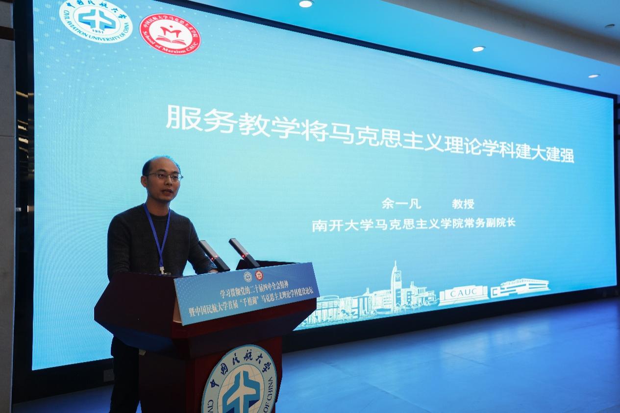 在主旨发言环节,南开大学马克思主义学院常务副院长余一凡教授,回顾了南开大学马克思主义学院的历史发展,分享了学科建设的经验做法,强调始终围绕服务教学开展科研工作,以科研成果为教学持续发展注入动能。