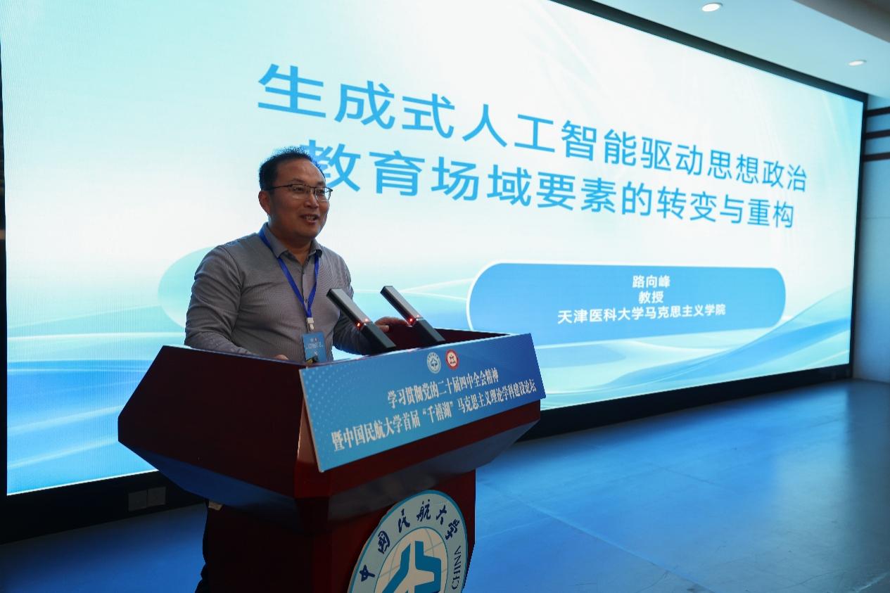 天津医科大学马克思主义学院院长路向峰教授分享了生成式人工智能驱动思想政治教育场域要素的转变与重构,从伦理规范、融合之力等角度对未来思想政治教育发展进行了展望。