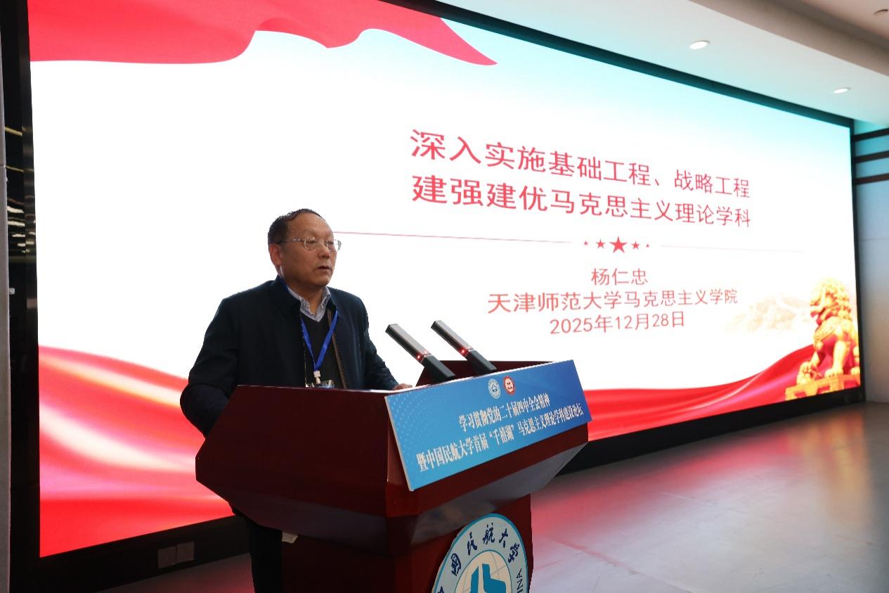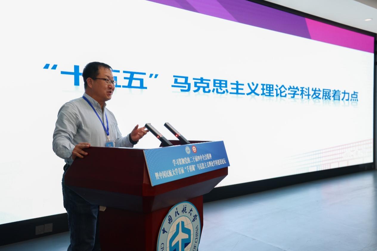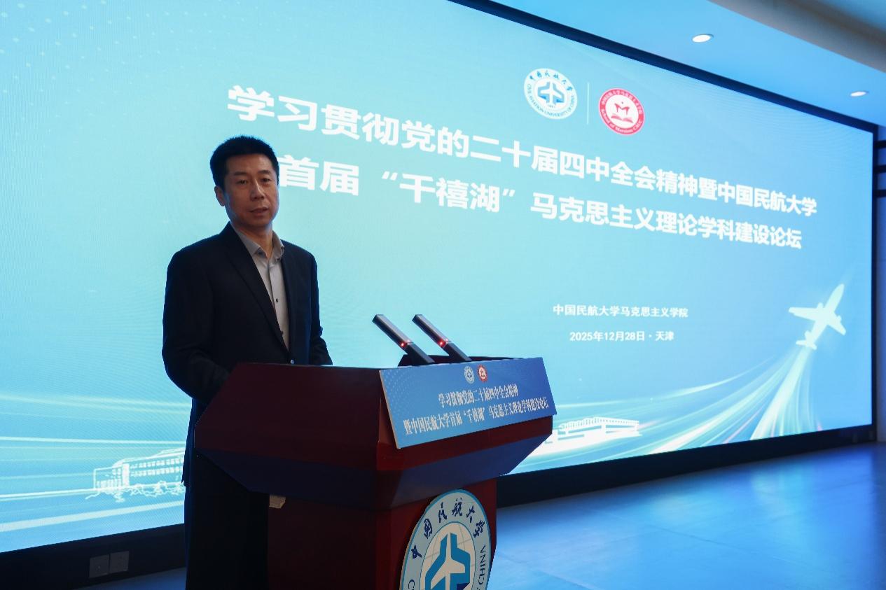 曹胜利在致辞中指出,党的十八大以来,以习近平同志为核心的党中央高度重视思想建党、理论强党,习近平总书记围绕加强马克思主义理论研究和建设,发表一系列重要论述,深刻回答了坚持和发展马克思主义的方向性、根本性问题,系统阐明了马克思主义理论研究和建设的方向目标、基本原则、根本任务、重点工作。马克思主义理论学科是中国特色哲学社会科学体系中具有引领性地位的重要学科。中国民航大学于2024年获批马克思主义理论一级学科硕士点,始终坚持立足民航、服务社会、面向世界,践行“建民航、兴民航、强民航”的初心,传承“忠诚、爱国、奋斗”的家国情怀。未来,学校将持续深入开展马克思主义理论研究,强化民航行业的政治属性和国家战略性产业定位,打造具有行业特色的马克思主义理论教学、科学研究、人才培养与宣传思想文化高地。