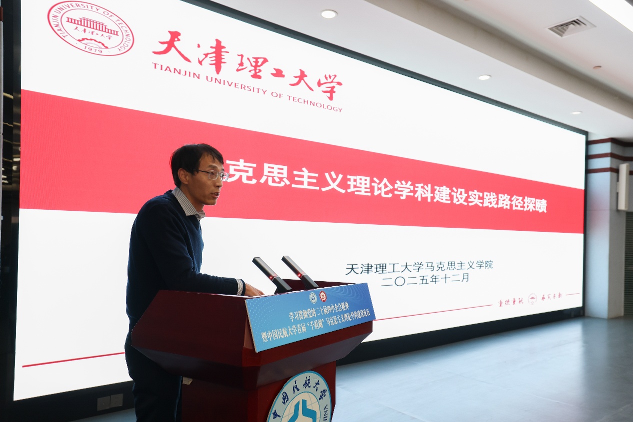 天津工业大学马克思主义学院院长杨永利教授围绕“十五五”时期马克思主义理论学科发展的着力点,为中国民航大学马克思主义理论学科建设提出建议,强调要在学科建设中突出民航行业特色,进一步凝练“高精尖”品牌。