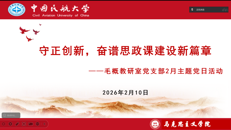 2月10日下午,毛概教研室党支部在线上开展“守正创新 奋谱思政课建设新篇章”主题党日活动。活动由党支部书记陈燕芽主持,全体成员参加。