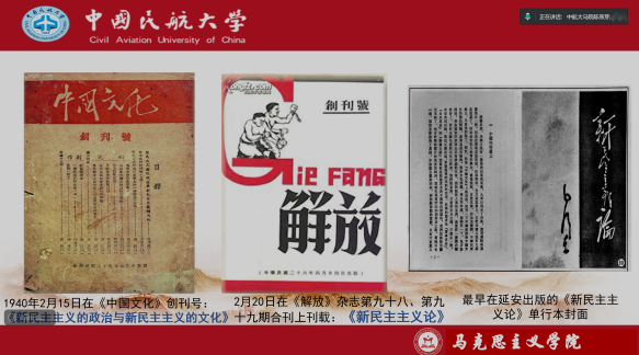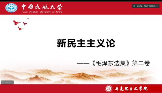 陈燕芽老师以原文内容为抓手,结合写作背景及授课运用等对收录在《毛泽东选集》第二卷中的《新民主主义论》一文进行深入剖析。《新民主主义论》一文在抗日战争进入相持阶段的关键时刻开宗明义地回答了中国向何处去的时代之问,系统阐明了中国革命和未来建设新中国的一系列根本问题,描绘了新民主主义社会蓝图,是马克思主义中国化时代化的光辉典范。