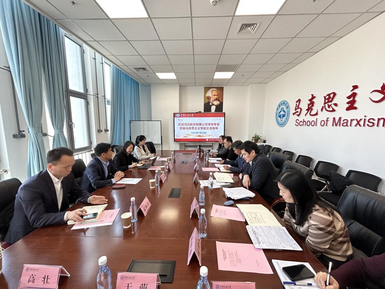 3月20日,河北航空有限公司党委书记罗占领一行4人到我校校史馆、航空安全教育基地、廉洁与法治教育教学基地参观,并到马克思主义学院调研,召开交流会。学院领导班子成员,民航行业文化研究中心及学院教师代表参加会议,会上围绕民航行业文化融入地域文化推动国内航司特色化发展探索与实践的主题开展交流研讨,就航司差异化发展、文化赋能民航建设等核心议题交换思路。