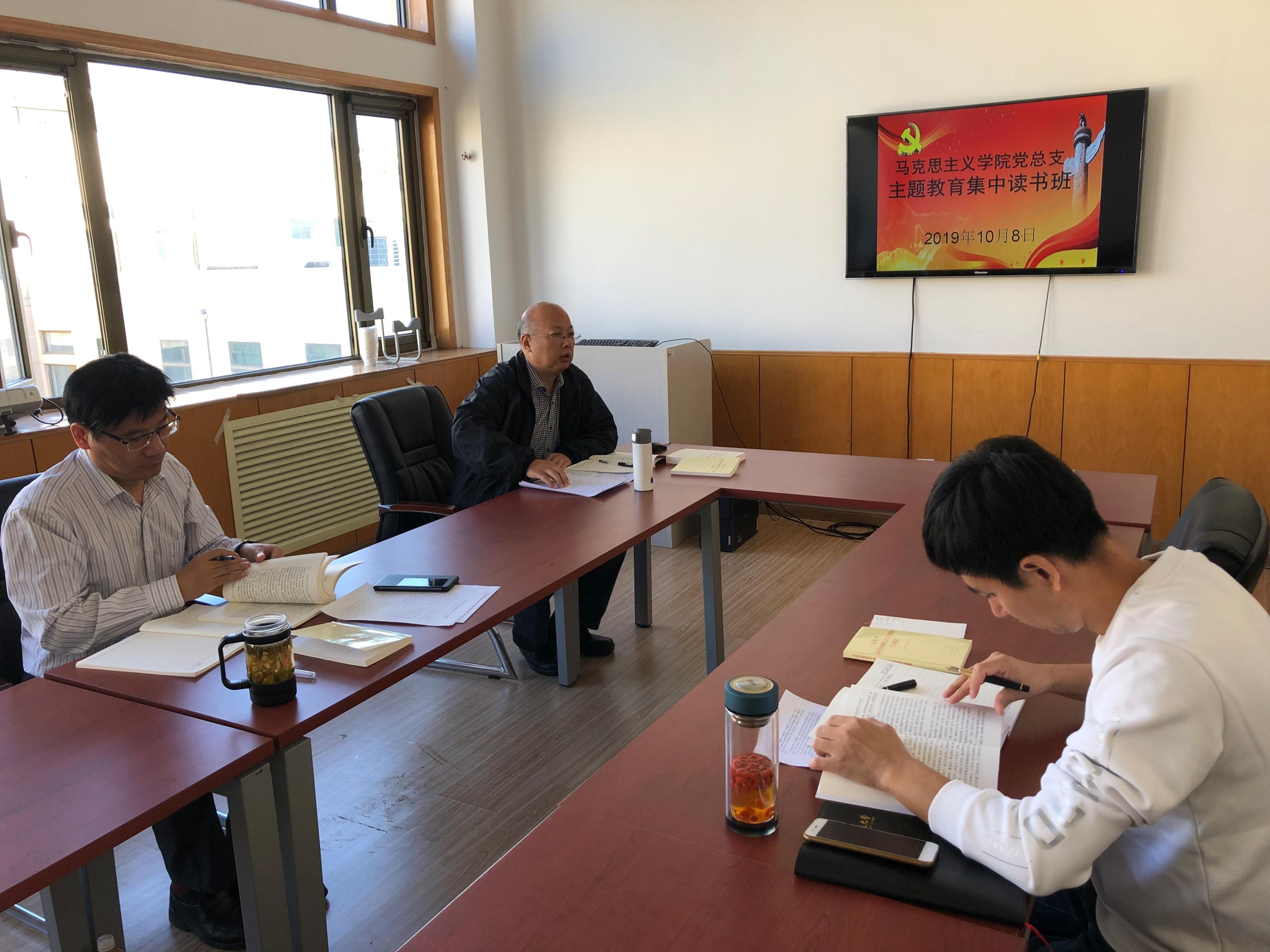 2019年10月8日,马克思主义学院党总支召开主题教育集中读书会第3期,学习内容为:《重要论述选编》中“125页领导干部要在改进作风上发挥示范作用”和《重要论述选编》中“186页领导干部要践性’三严三实’”。