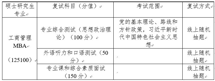 3.复试内容:工商管理硕士专业学位(125100)复试内容
