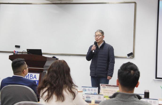 讲座开始前,经济与管理学院党委书记许天牧书记致欢迎词,并寄语同学们要运用所学,回到实际工作中,做到学习与工作融合,真正把学习成果转化为谋划工作的正确思路和能力。
