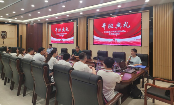 6月26日上午,在大连机场集团公司一楼会议室,由MBA教育中心副主任张明凤主持,经济与管理学院党委书记许天牧致开幕词,宣布2022级MBA“移动课堂”正式开班