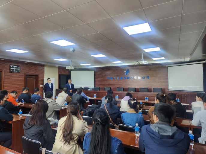 现场参观后,耿总与公司高管又为同学们带来了一场精彩的讲座。首先,耿副总回溯了飞龙通航从扬帆起航到破浪前行的峥嵘岁月,从专业运营资质的硬核实力,到精英团队的匠心耕耘,再到服务客户的品质坚守,每一个维度都彰显着企业风范。随后,运行控制与飞行标准部部长于洋为同学们带来了一场关于“管理学”的分享。他以“领导力锻造”为锚点,结合实战经验,深入剖析管理的内涵与实践路径。于部长的独到见解,引发同学们对管理本质的深入探讨,让大家在今后的学习和实践中有了更明确的方向。