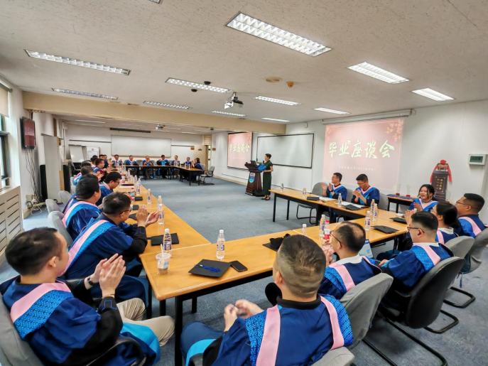 座谈会上,优秀毕业生代表陈星弟回顾了两年半求学时光,他深情致谢学校秉持“立足民航,致能致用”理念,创设多元教学场景,让理论知识真正转化为解决行业问题的“金钥匙”;感谢校院领导、授课教师、导师及中心工作人员搭建的优质平台;感怀同窗思想碰撞结下的深厚情谊。他号召全体毕业生怀揣母校赋予的智慧与力量,践行“明德至善、弘毅兴邦”校训,勇担责任、开拓进取,更要以“特色 MBA”为羽翼,凭专业之能披荆斩棘,拓展职业疆域至更高更远。