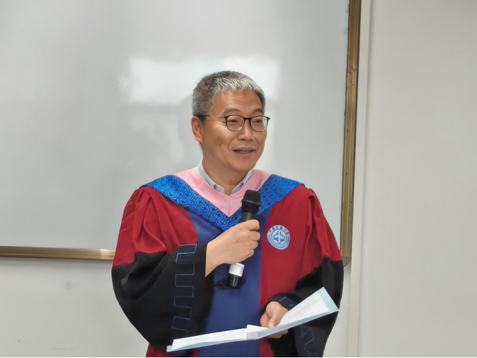 随后,教师代表田利军副教授以幽默诙谐的发言,为毕业生送上真挚祝福。他祝贺毕业生喜获“民航MBA学位”这一“优质资产”,点赞大家边职场拼搏边挑灯学习的毅力。他强调同学们兼具职场精英与专业技术背景,在学习中培养的抗压能力与管理思维是未来职场的核心竞争力,这就是民航MBA的独特价值。最后以三条“财务建议”寄语2025届MBA毕业生,并祝福大家事业如A380客机般稳健攀升,财富像低成本航空一样迅猛增长,生活像头等舱一样舒适惬意!