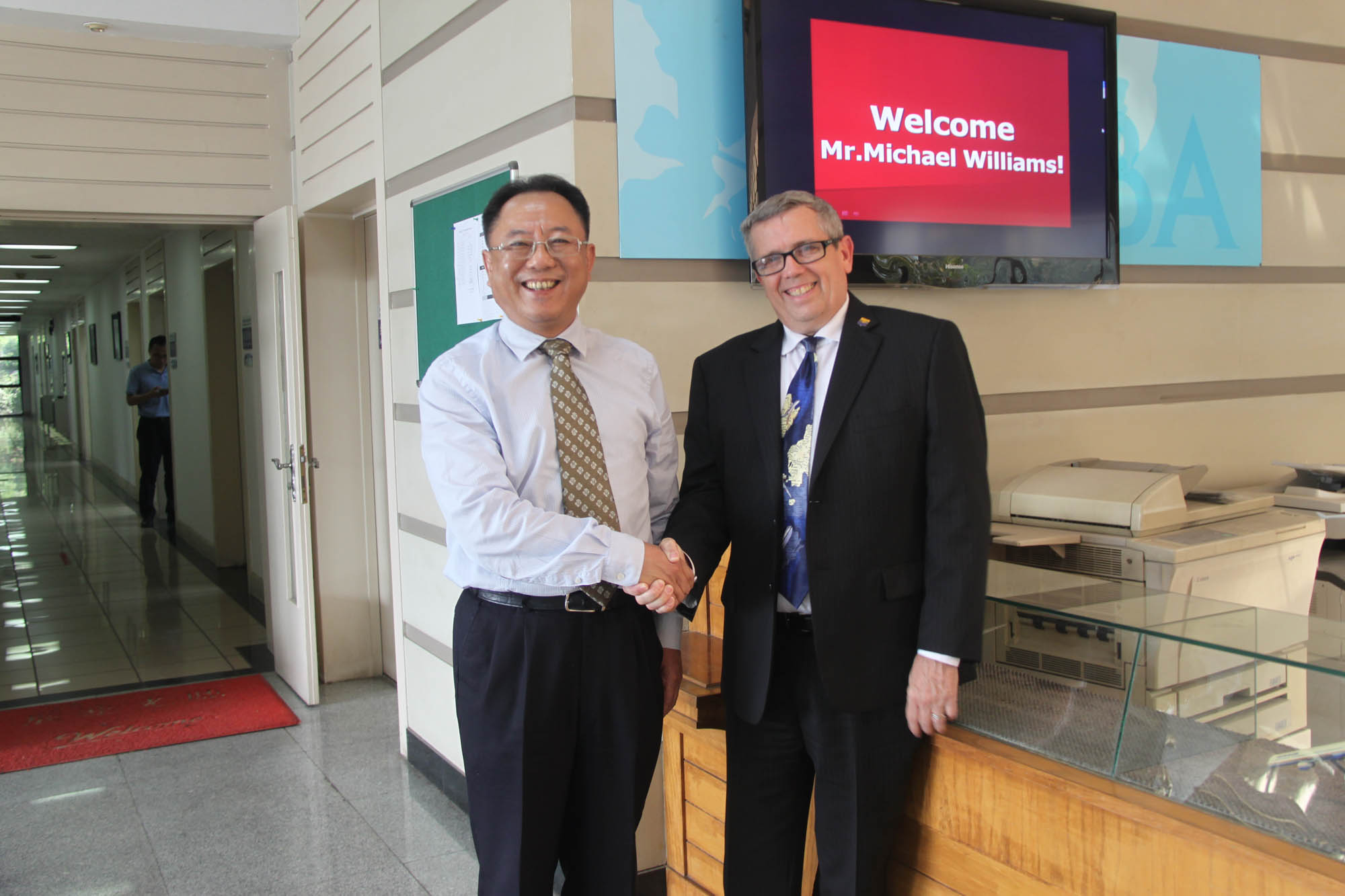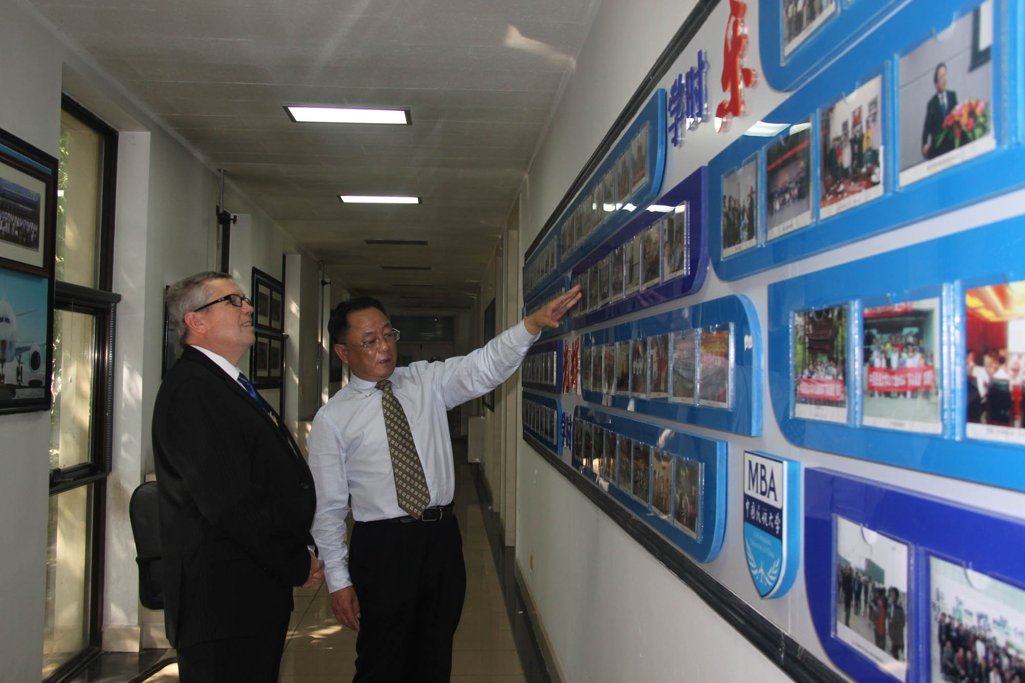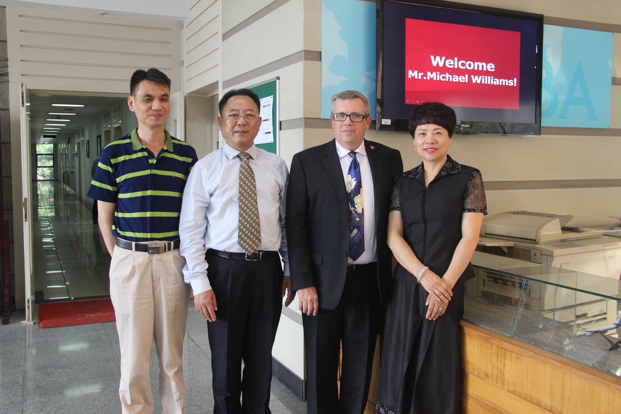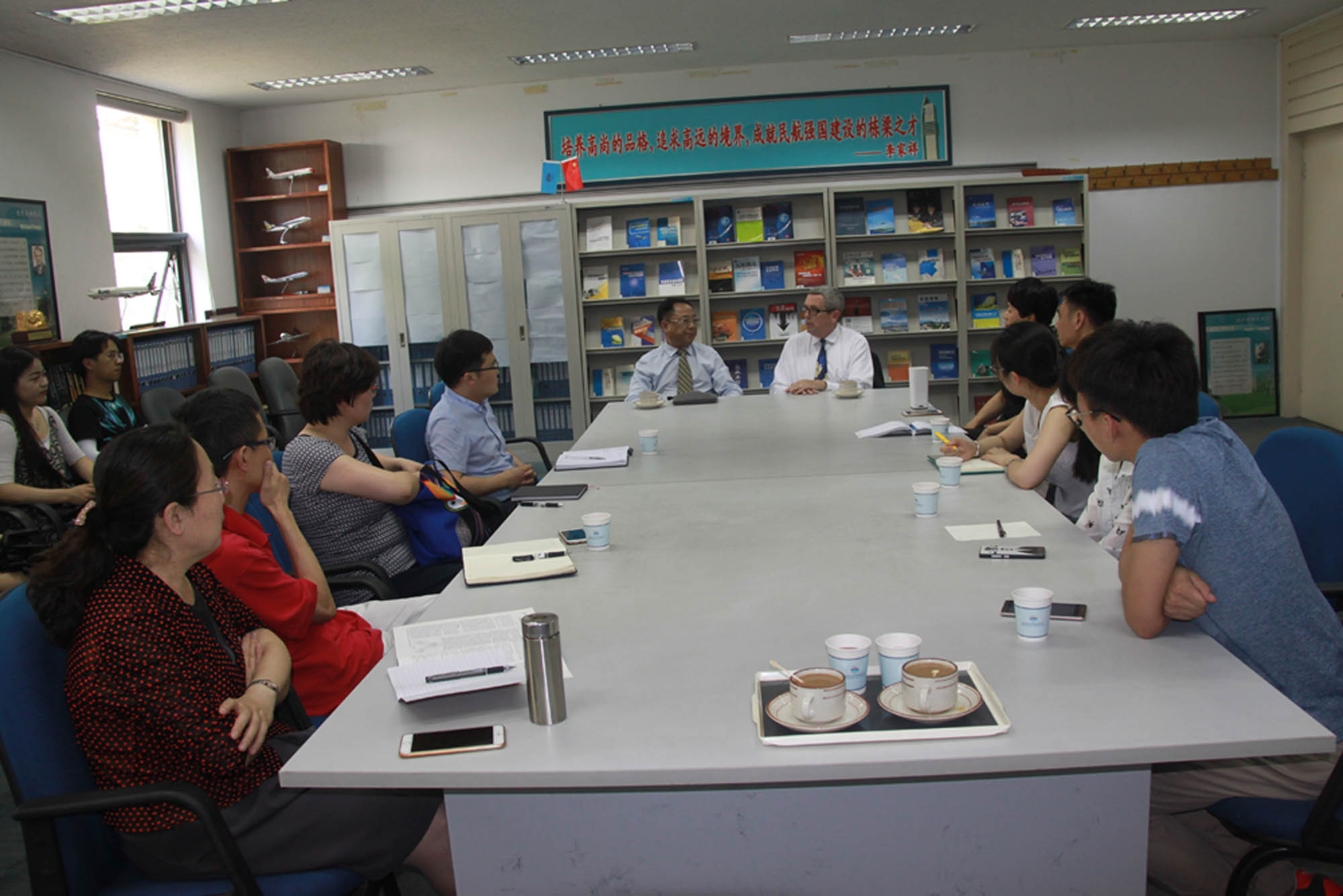 5月18日下午,Embry-Riddle大学商学院院长Michael Williams访问了中航大经济与管理学院,陈玉宝院长在经管学院MBA中心会议室接见了Williams先生,经管学院相关师生代表参加了会谈。 陈玉宝院长首先致欢迎词并向Williams先生简要介绍了我院的概况,希望在3+1+1合作项目已取得丰硕成果的基础上进一步扩大双方的合作领域特别是访问学者的互换,Williams先生表示完全赞同。 张青松副院长就专业国际认证事宜与Williams先生进行了探讨,Williams先生进行了详细介绍并表示愿将取证经验分享给我院;郑兴无和赵桂红主任就航空金融与航空运输管理专业建设及邀请对方师资来我院讲学等与Williams先生进行了交流并得到了对方的积极回应,Williams先生表示他们学院确有不少学者愿意来中国讲学。 李春玲和许红军主任就MBA项目合作尤其是案例库建设与共享等与Williams先生进行了交流;教务科科长罗茂华就3+1+1项目运作中的细节问题与Williams先生深入交换了意见。此外,有意向加入3+1+1项目的约10名我院学子也得到了Williams先生面对面的耐心指导。 会谈结束后,Williams先生参观了MBA教育中心及经管学院南四办公和教学设施。