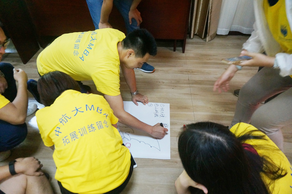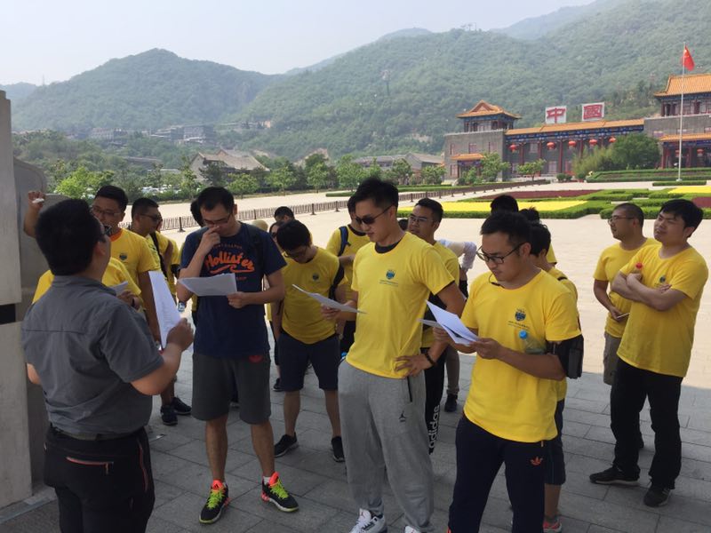 早上8点准时出发,同学们经过2个小时的奔波,赶到此次拓展基地——天津蓟县盘山拓展基地。在教练的指导下,全体学员分成肖帮和桃花帮,进行了队旗队徽队歌设计等准备程序,随后大家共同携手完成了趣味破冰等项目。虽然当天气温直逼38度,但学员们依旧迎难而上,积极高质量完成教练交代的每一项任务。特别是主题项目——武林拍卖大会,同学们更是兴致高昂,积极完成任务。此次拓展,通过冷兵器设计、营销拍卖、盘山寻宝冲关等环节的设计,旨在加强学员的团队精神、团队意识,以及团队组织凝聚能力的锻炼,考验团队的前期计划、现场应变能力等。同时经过拓展训练也让同学们学习到博弈理论,追求利益最大化,使同学们理解团队目标、团队使命的重要性。