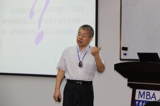 5月5日,MBA中心邀请了北京交通大学的叶龙教授为2011级MBA学员们带来了全面透彻的人力资源管理课程。 叶教授声音洪亮,富有激情而又不失亲和力,讲课思路清晰、易懂,能充分调动学生的积极性和主动性,引导学生在课堂中扩展思路,积极思考。他将本次课程分为战略人力资源管理、员工招聘、管理人员评价、绩效管理、培训与开发、薪酬设计与管理6个模块,通过对现代人力资源管理概念的系统梳理,从战略到具体操作层面进行层层深入地讲授以及系统全面地剖析,从而大大地提升了学员们作为优秀管理者的人力资源管理的基本技能。