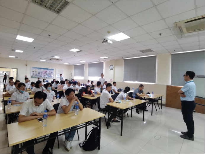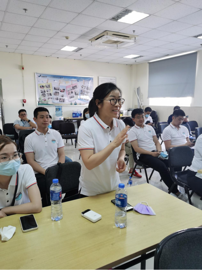 随后,在太古公司相关工作人员的引导下,同学们来到了公司的员工会议室。工作人员向大家介绍了企业的发展概况、企业的精细化管理的运作方式,并与在座的同学进行了热烈的互动交流。同学们了解到太古公司自成立初期就以“人才为本”作为宗旨,提供相对应的技术人员培训。成立了专业的培训学校,先后取得中国,香港,欧共体民航局的培训及考试中心资质。除此之外,齐全的非技术培训系统为员工提供了全面发展的机会,也为太古的迅速稳健的发展打下了牢实的基础。