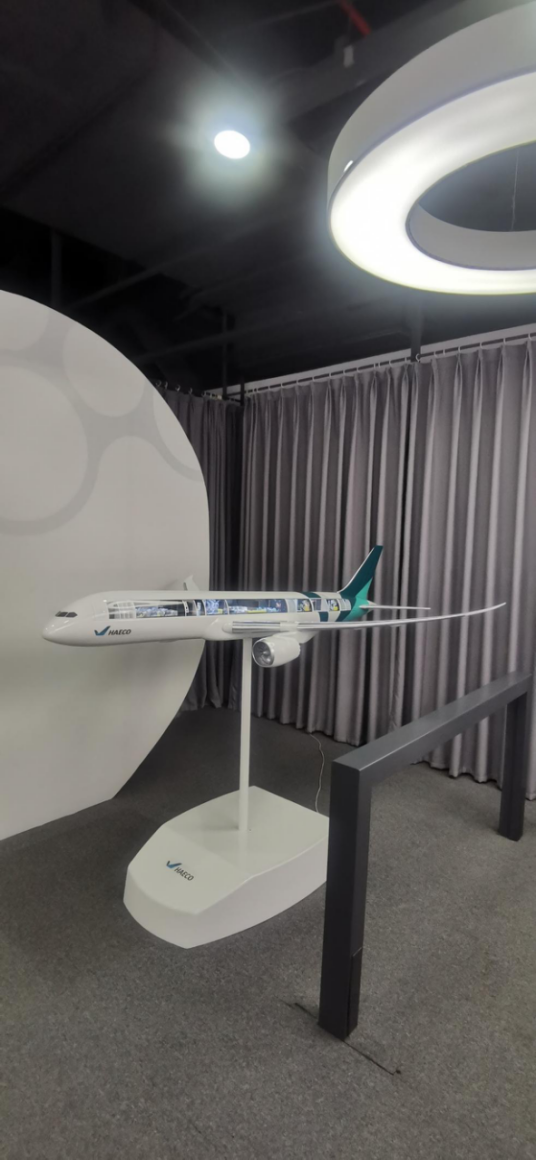 在太古访客中心,首先同学们通过照片、实物、互动式视频、虚拟现实(VR)等多种形式详细了解了厦门太古的核心技术能力。通过时间走廊、图片墙等形式感受了以厦门太古为龙头的厦门航空维修企业的发展历史和现状。随后,同学们怀着激动的心情登上访客中心的空中客车公务机ACJ318 1:1客舱模型进行体验,这架公务机客舱模型彰显了厦门太古公务机及私人飞机设计整装方案的设计和制作能力。公务机客舱整装是厦门太古在亚洲领先的业务,也是亚洲唯一一家空中客车公司授权及波音公司认证的公务机整装中心。厦门太古公务机客舱整装中心能为公务机及私人飞机提供一站式服务,服务内容涵盖工业设计、工程设计和认证、客舱整装、售后服务以及机身维修。