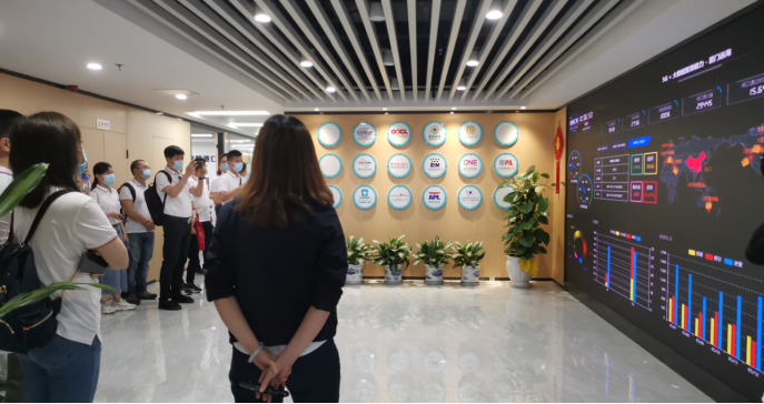 “智慧机场”是民航努力发展的重点工作,而“智慧码头”同样也走在智慧海运发展的前列。一进入办公大楼,码头的讲解员便向同学们展示了“5G+大数据智慧能力”,用一张变换的大屏幕将车辆、货物、时间、路线、工作进度等码头生产要素信息全面数据化、智能化、透明化的展现在大家眼前。