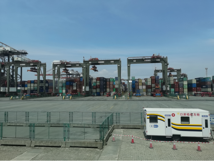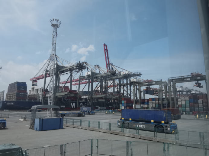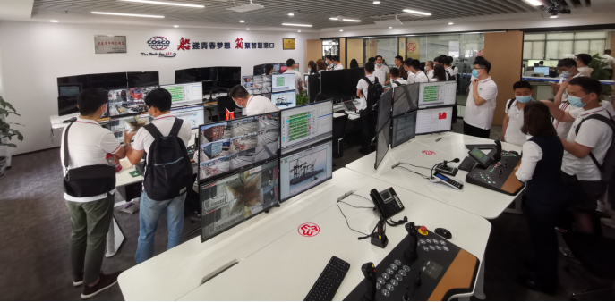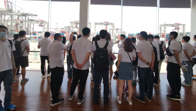 随后,在工作人员带领下,学员们来到了厦门港码头的现场观察室。在这里,大家直观地感受到了“智慧”航运带来的震撼,在控制室工作人员们的管控下,码头上各类货物的搬、运、卸工作全部由人工智能机器完成,在解放人工劳动力提高生产力的同时,以人工智能等高新技术作为核心支撑的智慧码头安静又繁荣地呈现在学员面前。